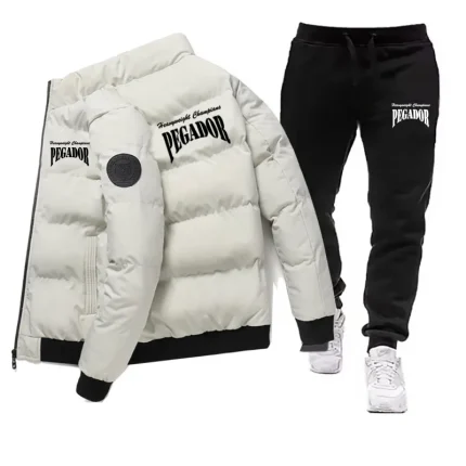 남성용 겨울 따뜻한 면 재킷+드로스트링 바지 세트 새로운 패셔너블 캐주얼 스포츠 파이크 다운 아웃도어 방풍 재킷 세트