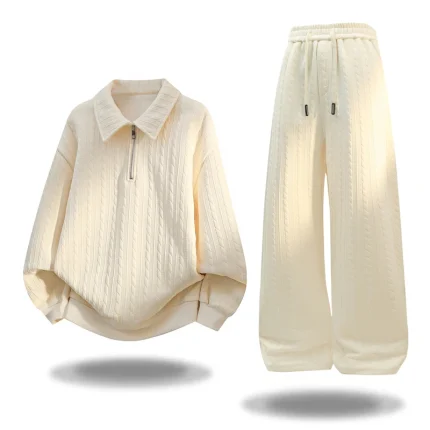 남성 가을 캐주얼 스포츠웨어 세트 투피스 부드러운 편안한 원단 야외 활동복 칼라 하프 집업 후디 엘라스틱 웨이스트 스웨트팬츠