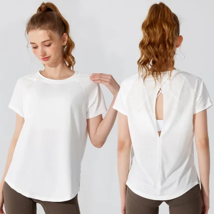 스타일아유 여성 라운드넥 트임 백오픈 숏슬리브 티셔츠 통기성 속건 요가 피트니스 운동상의 YG0139