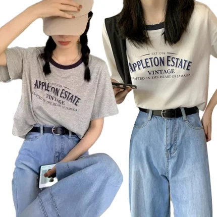 여성용 오버핏 반팔 티셔츠 여름 베이직 라운드 대형 사이즈 셔츠 블라우스 탑 톱 여자용 티셔츠