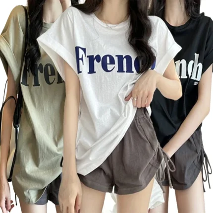 여성용 오버핏 반팔 티셔츠 여름 베이직 라운드 대형 사이즈 셔츠 블라우스 탑 톱 여자용 티셔츠