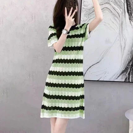 스타일아유 봄여름 위한 세련된 반팔 백협 미니 니트 드레스 여성의류 OP1852