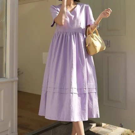 스타일아유 중년 여성 여름 반팔 패션 우아한 드레스 A라인 7부 소매 롱 원피스 OP1850