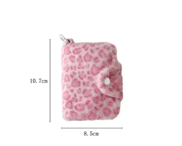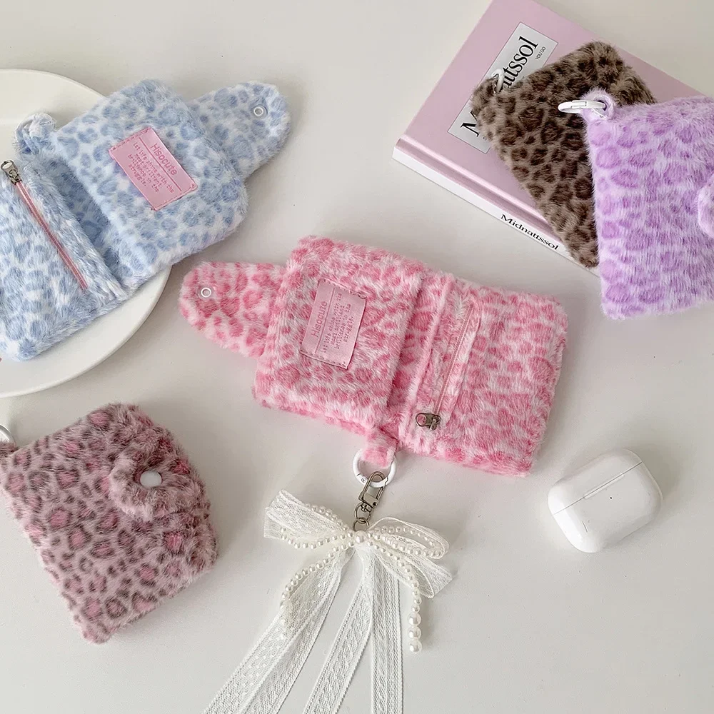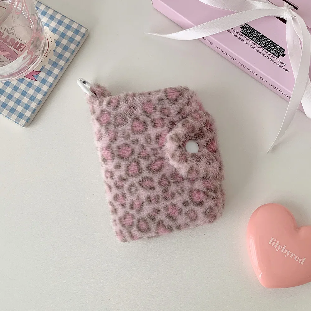 겨울 INS 패션 레오파드 프린트 플러시 스냅 지갑 카드 가방 귀여운 일본 소녀 펜던트 동전 지갑 잔돈 보관 가방