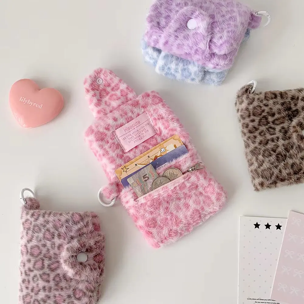 겨울 INS 패션 레오파드 프린트 플러시 스냅 지갑 카드 가방 귀여운 일본 소녀 펜던트 동전 지갑 잔돈 보관 가방