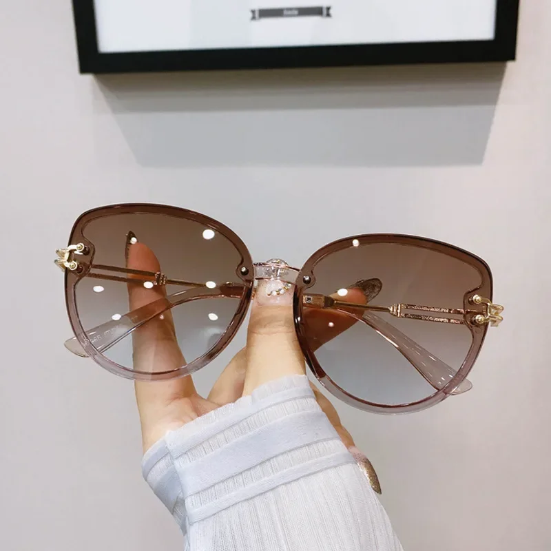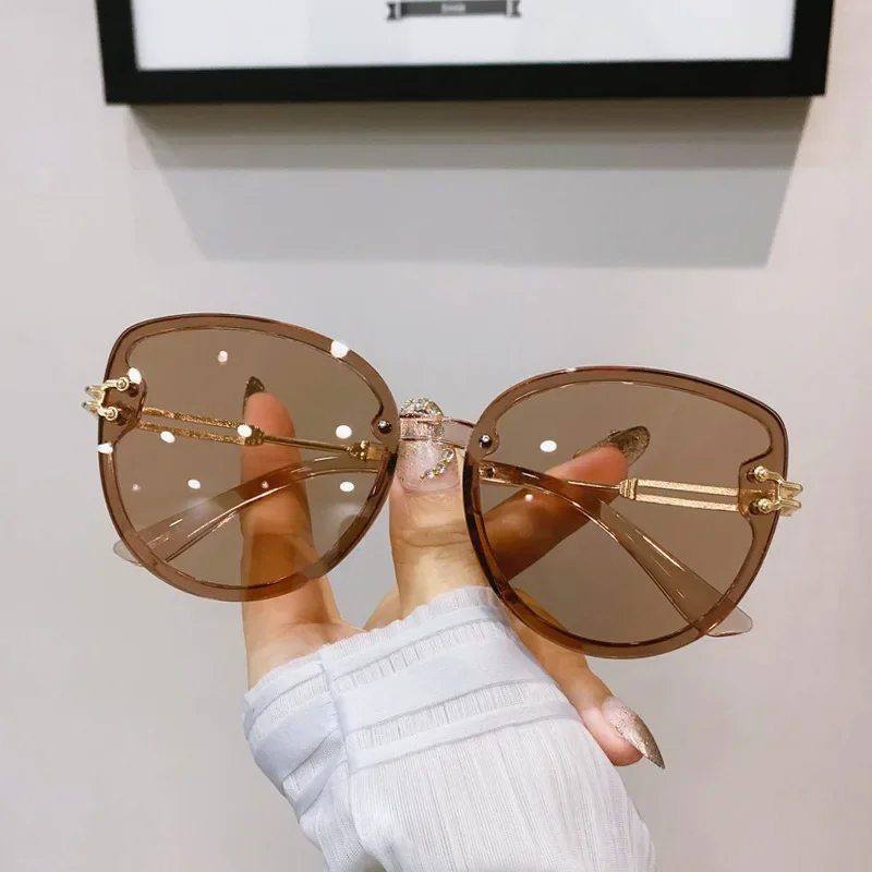 남녀공용 패션 고양이 눈 선글라스, 브랜드 디자이너, 야외 쉐이드, 여성용 그라데이션 금속 프레임 선글라스, UV400