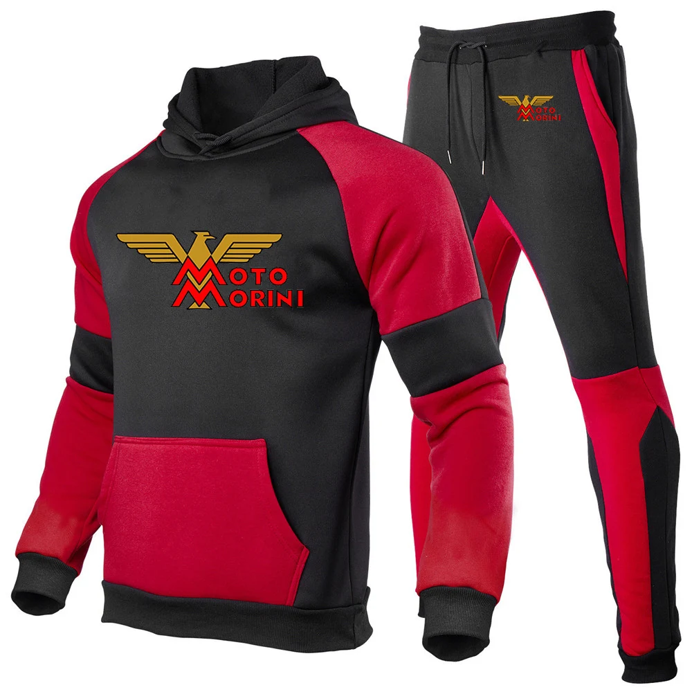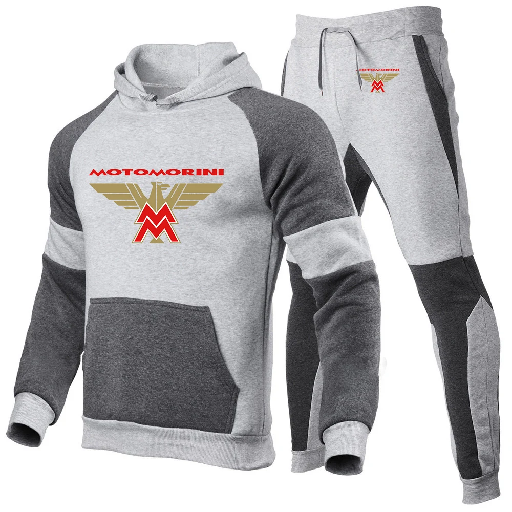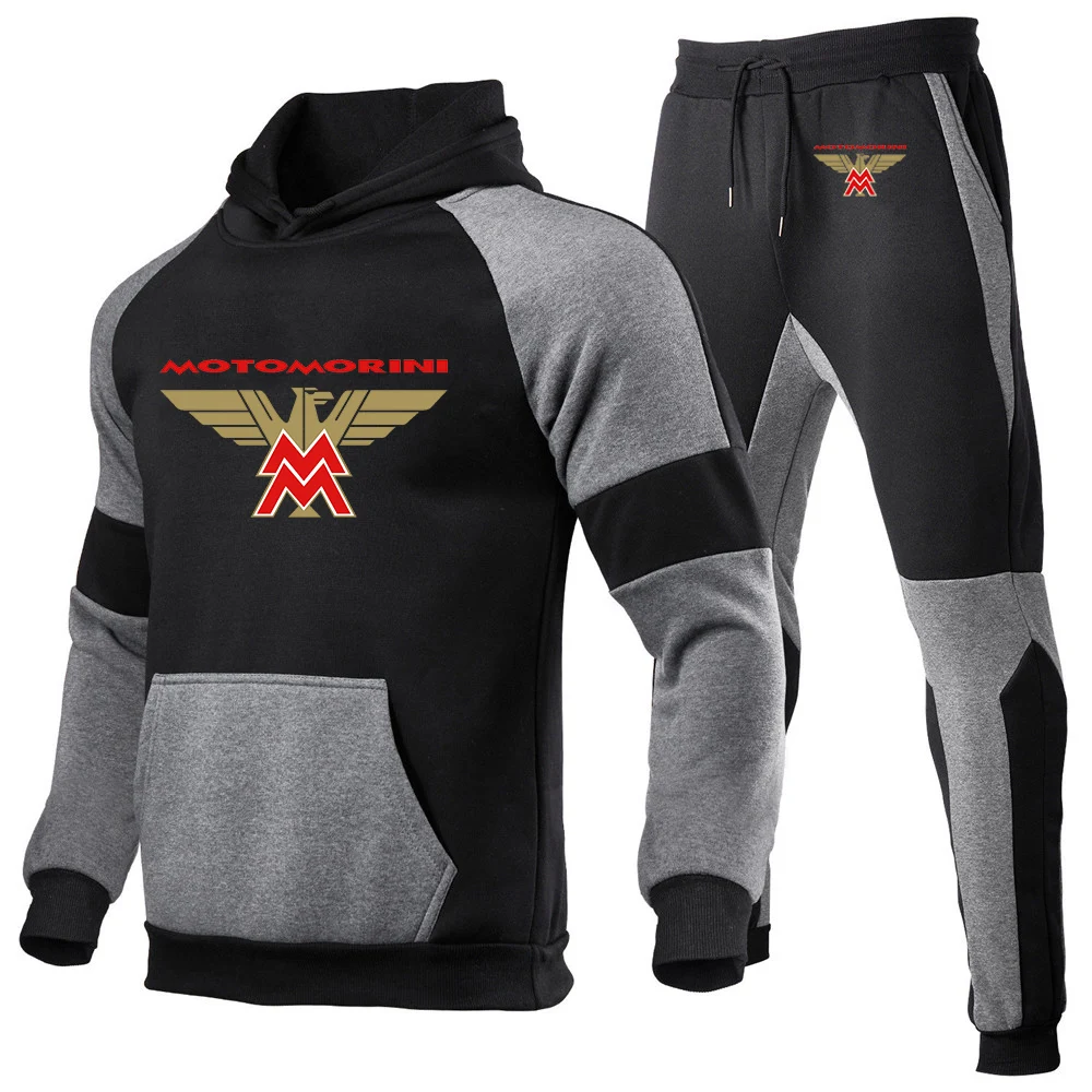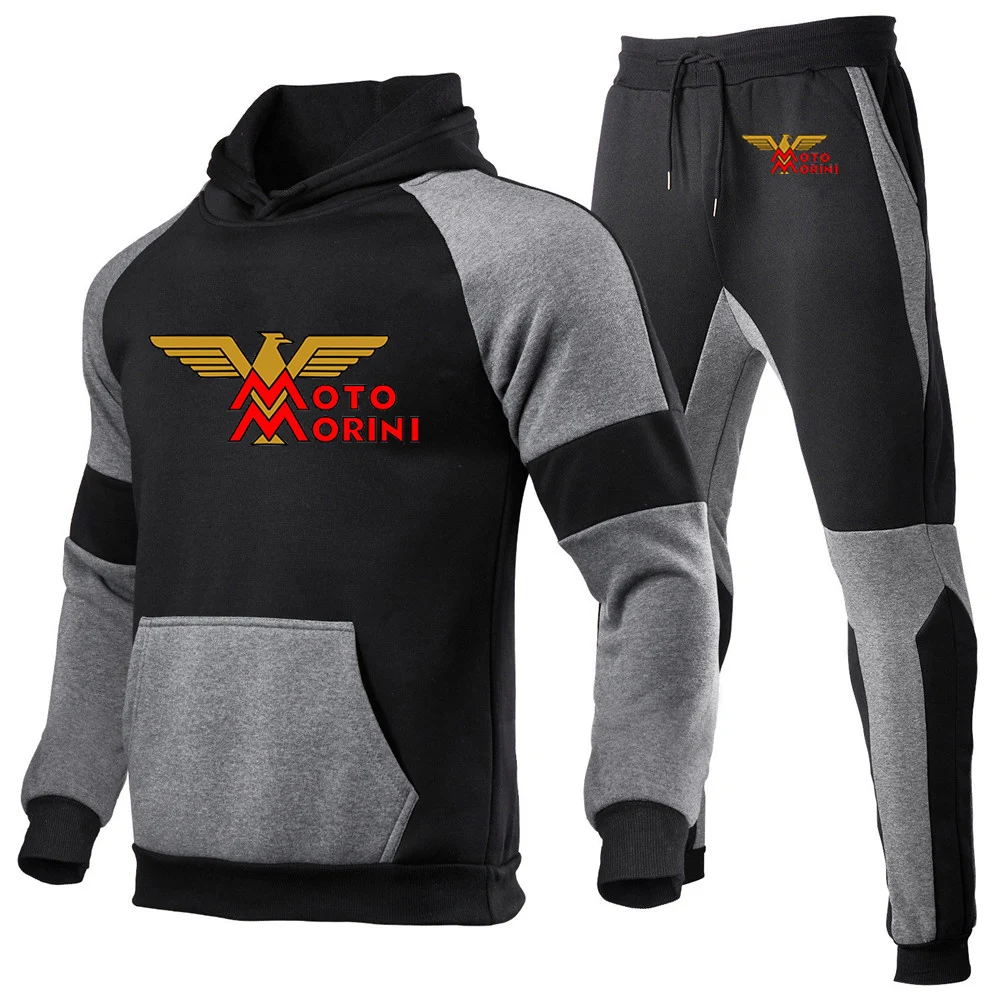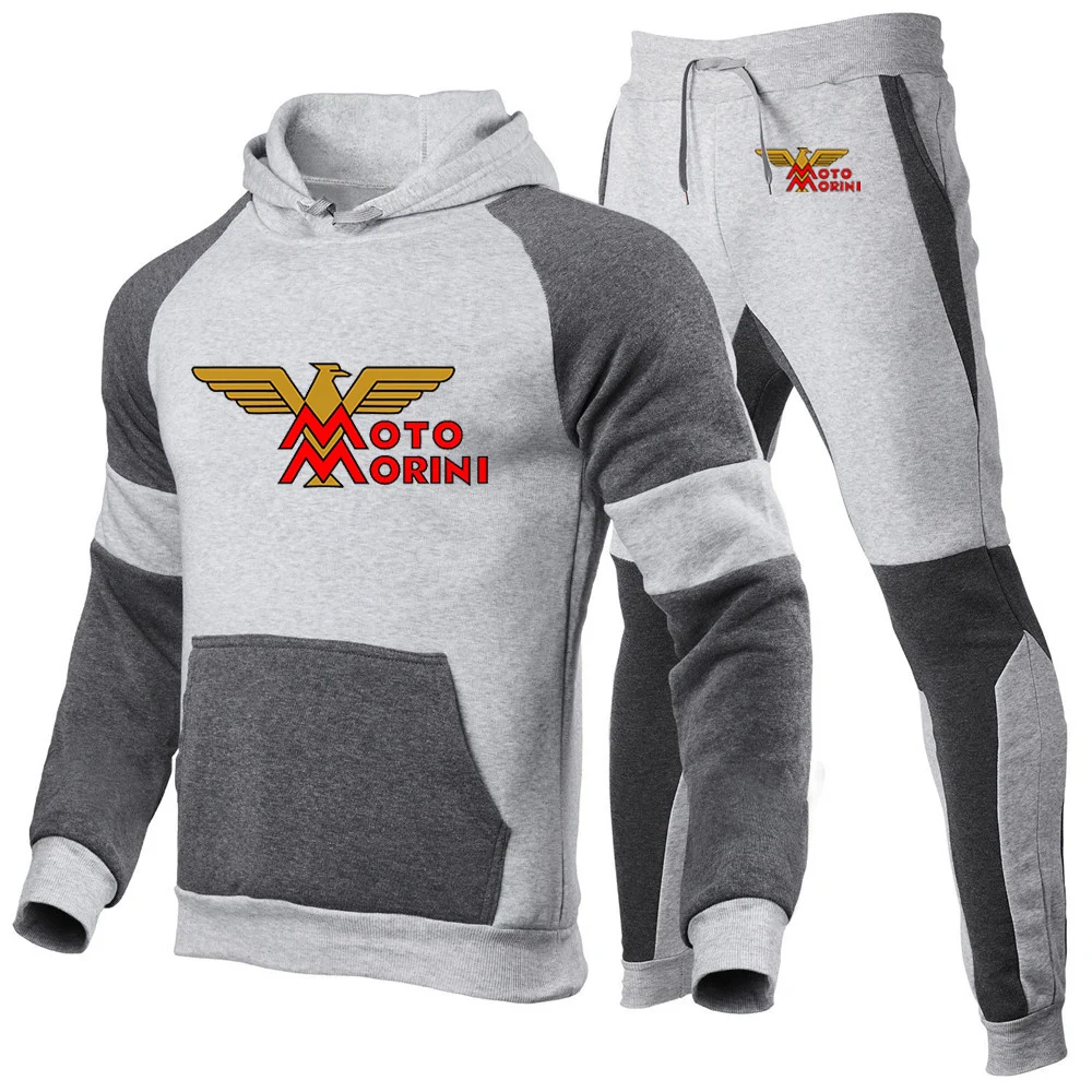 남성용 모토 모리니 로고 프린트 스포츠 스플라이싱 코튼 후드 운동복 및 조깅 스웻팬츠, 편안한 트렌드 세트, 2024 용수철 가을