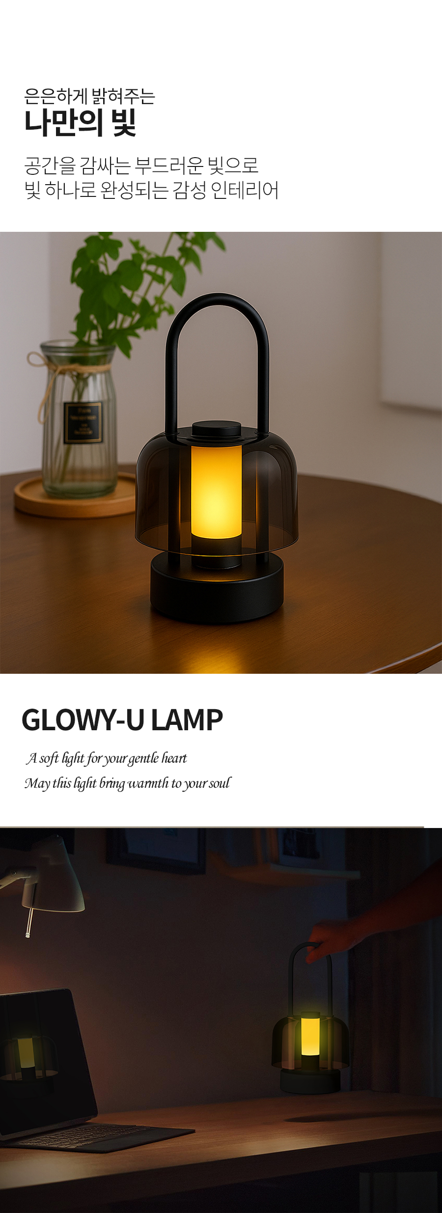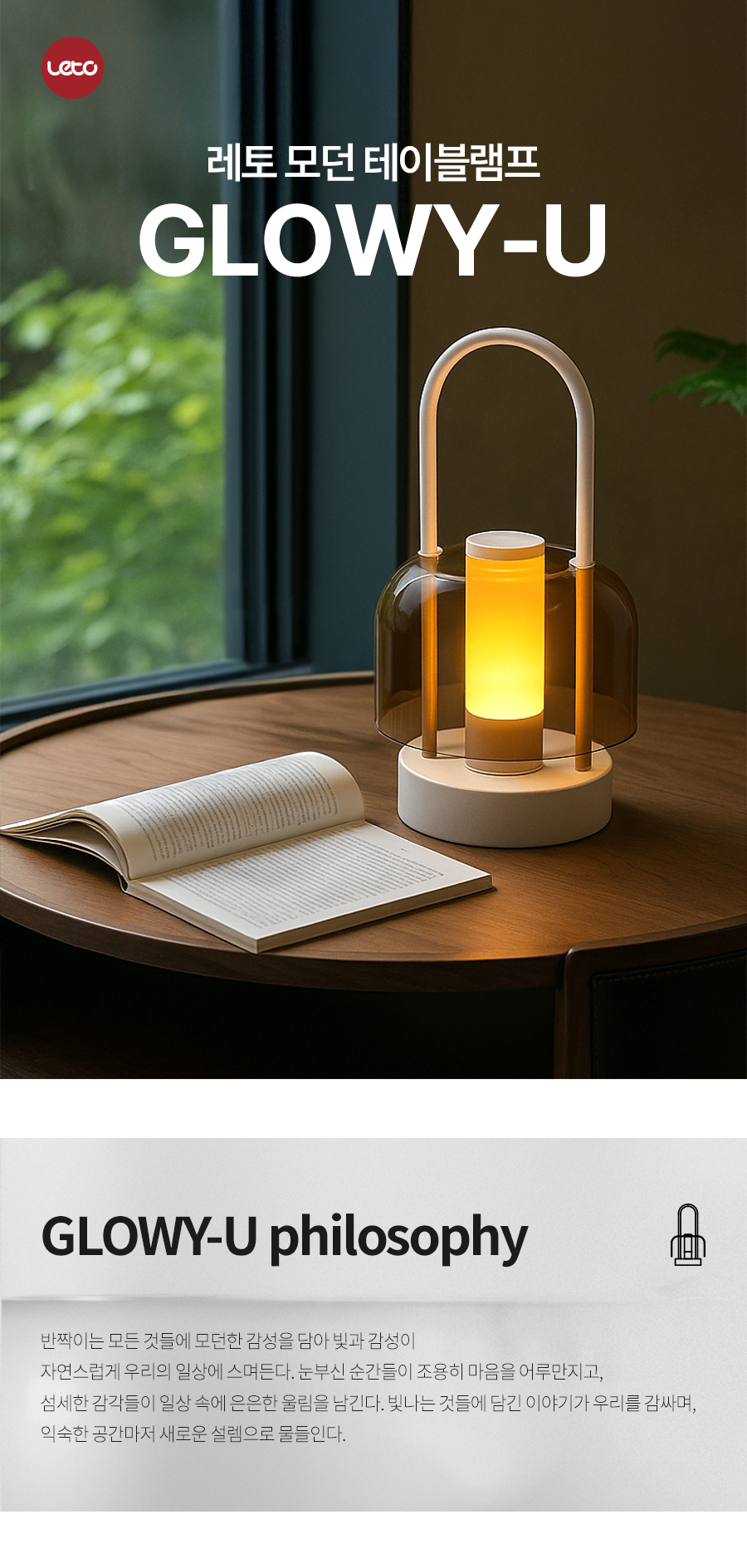 레토 무선 테이블램프 무드등 인테리어조명 수유등 수면등 집들이선물 GLOWY-U