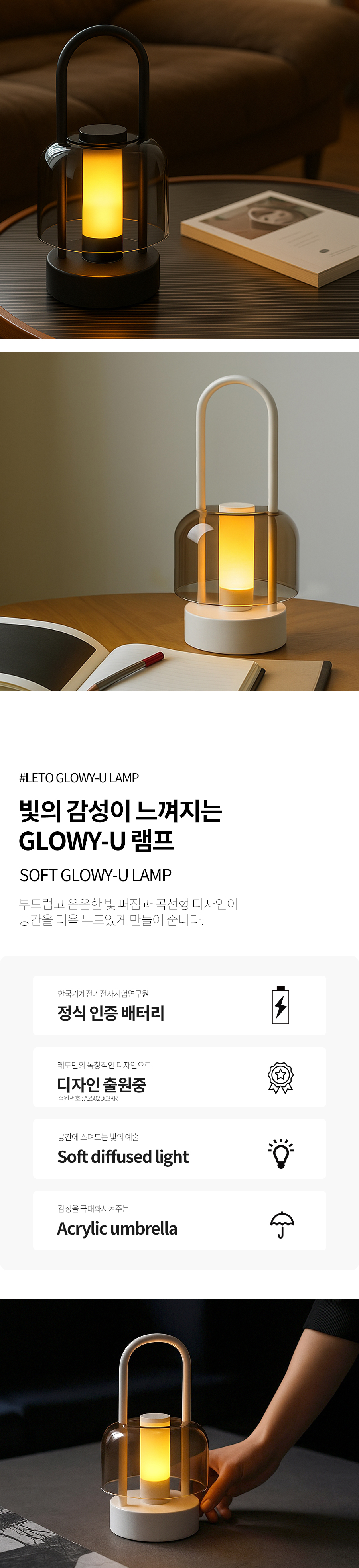 “레토 무선 테이블램프 무드등 인테리어조명 수유등 수면등 집들이선물 GLOWY-U”의 첫 상품평을 남겨주세요 응답 취소