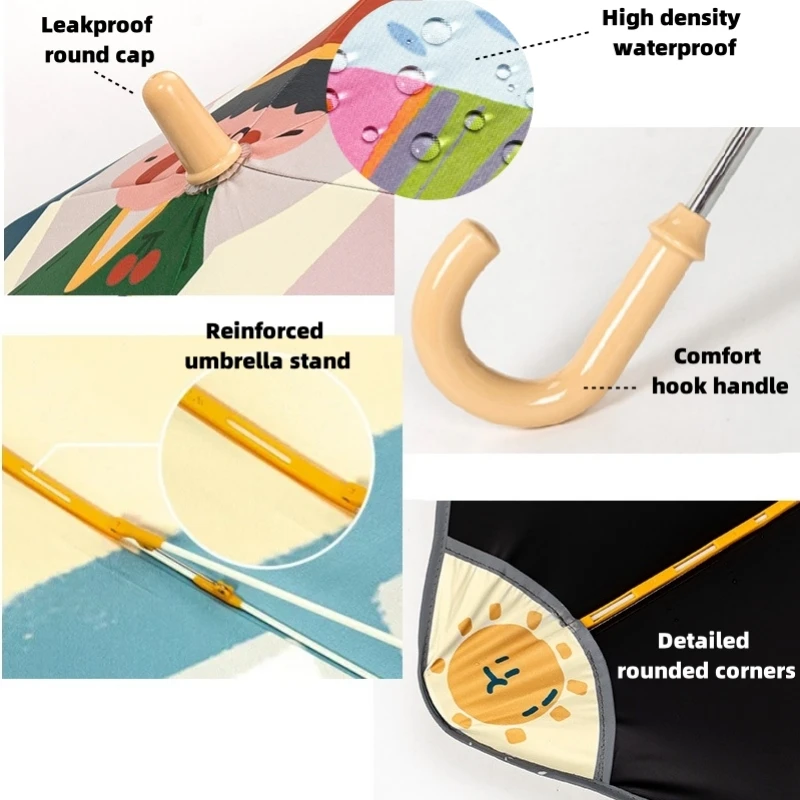 만화 UV 우산 긴 손 파라솔 키즈 태양 비 우산 반사 스트립 파라솔과 라운드 코너 보호 우산