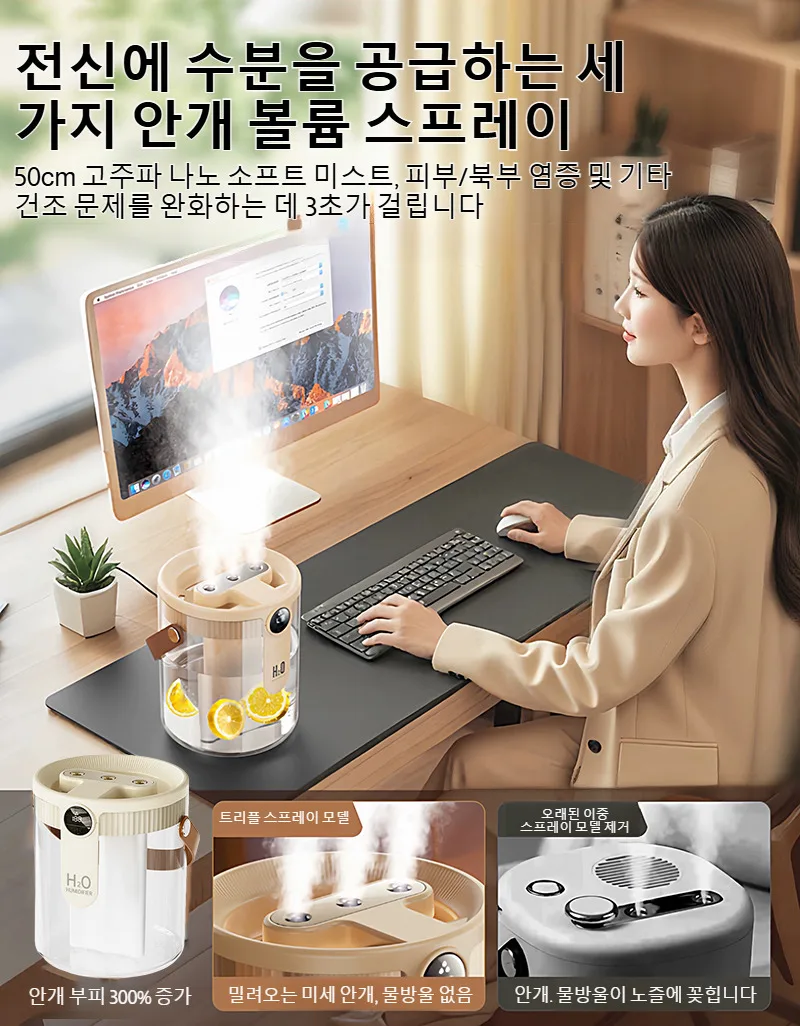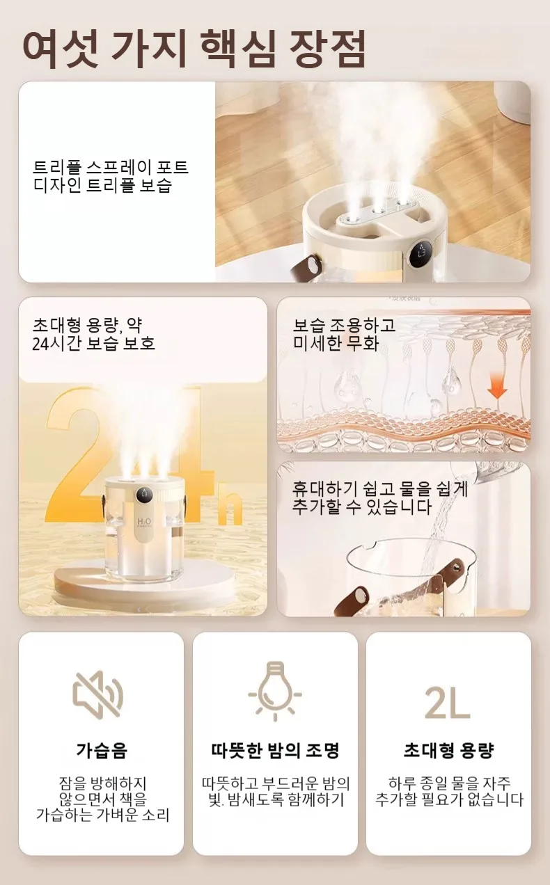 미니 가습기 멀티노즐 고농도 가습기 무선 휴대용 무소음 가습기 가전제품