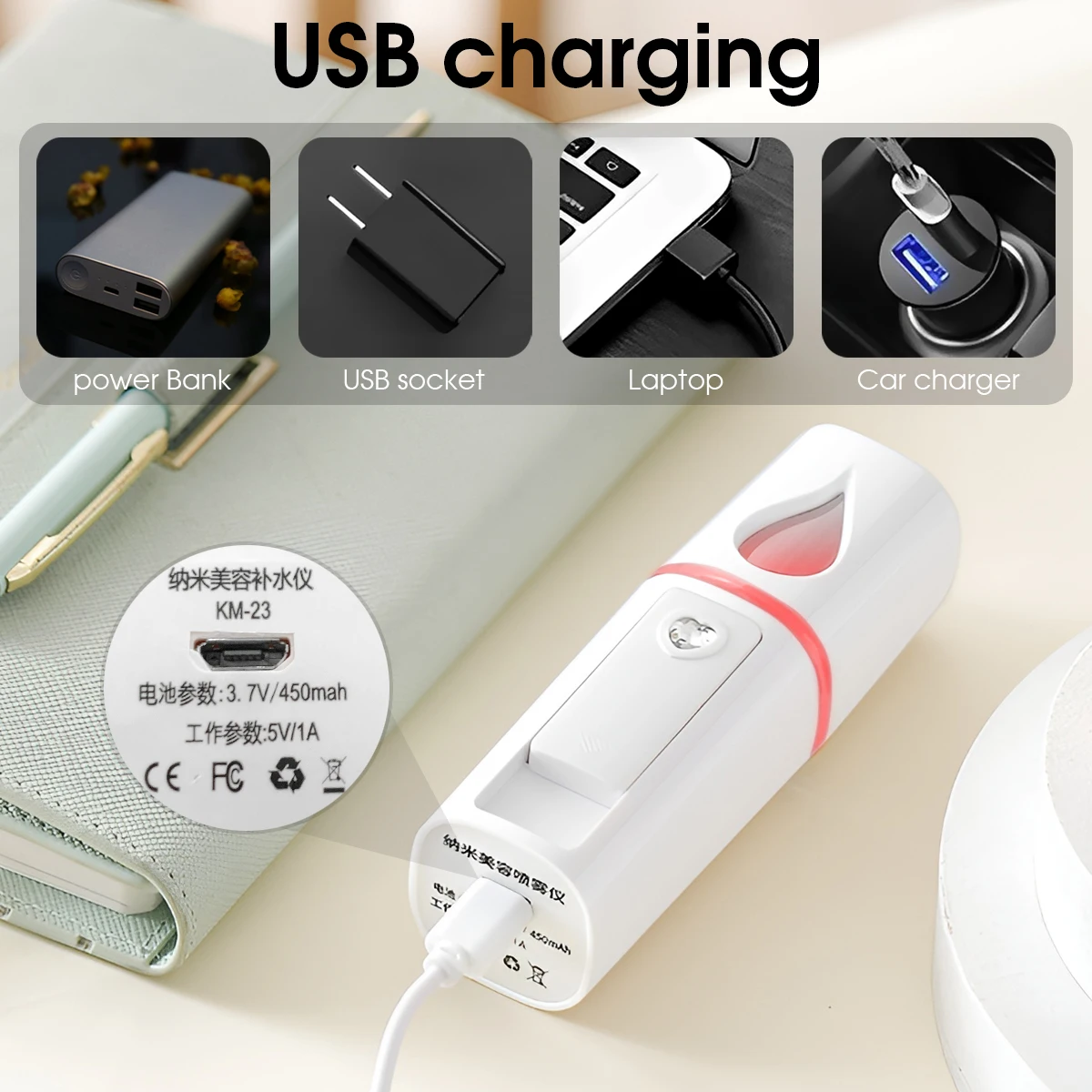 미니 스파 페이셜 스킨케어 에어 가습기 핸들 나노 미스트 스프레이어 거울 메이크업 휴대용 쿨 페이스 스티머 기기 뷰티 도구
