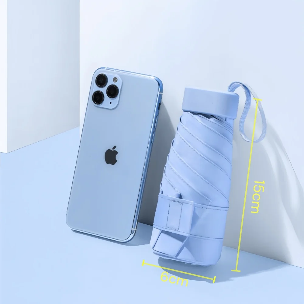 【소형 및 경량】 무게가 0.24g에 불과하고 크기가 15cm(휴대폰 크기 정도)인 이 초소형 휴대용 여행용 우산은 주머니, 지갑 또는 배낭에 쉽게 들어갈 수 있어 이 작은 우산은 이동 중에도 완벽한 동반자가 됩니다.