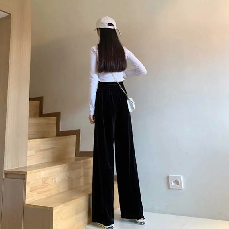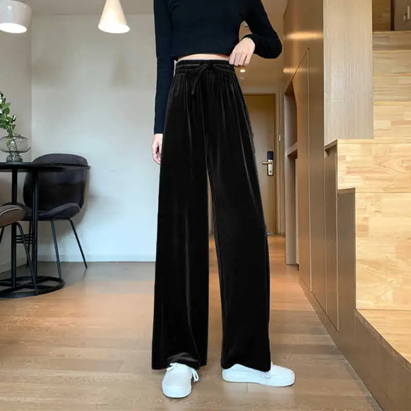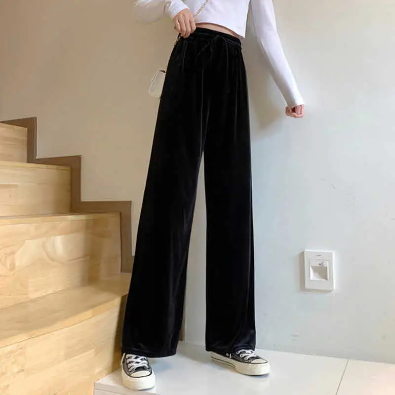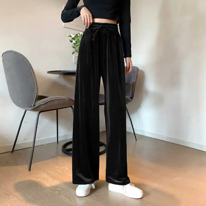 벨벳 트레이닝 바지와이드 여성용 일자 허리 밴딩 하이웨스트 조거 팬츠 럭셔리 스포츠웨어 및 편안한 일상복