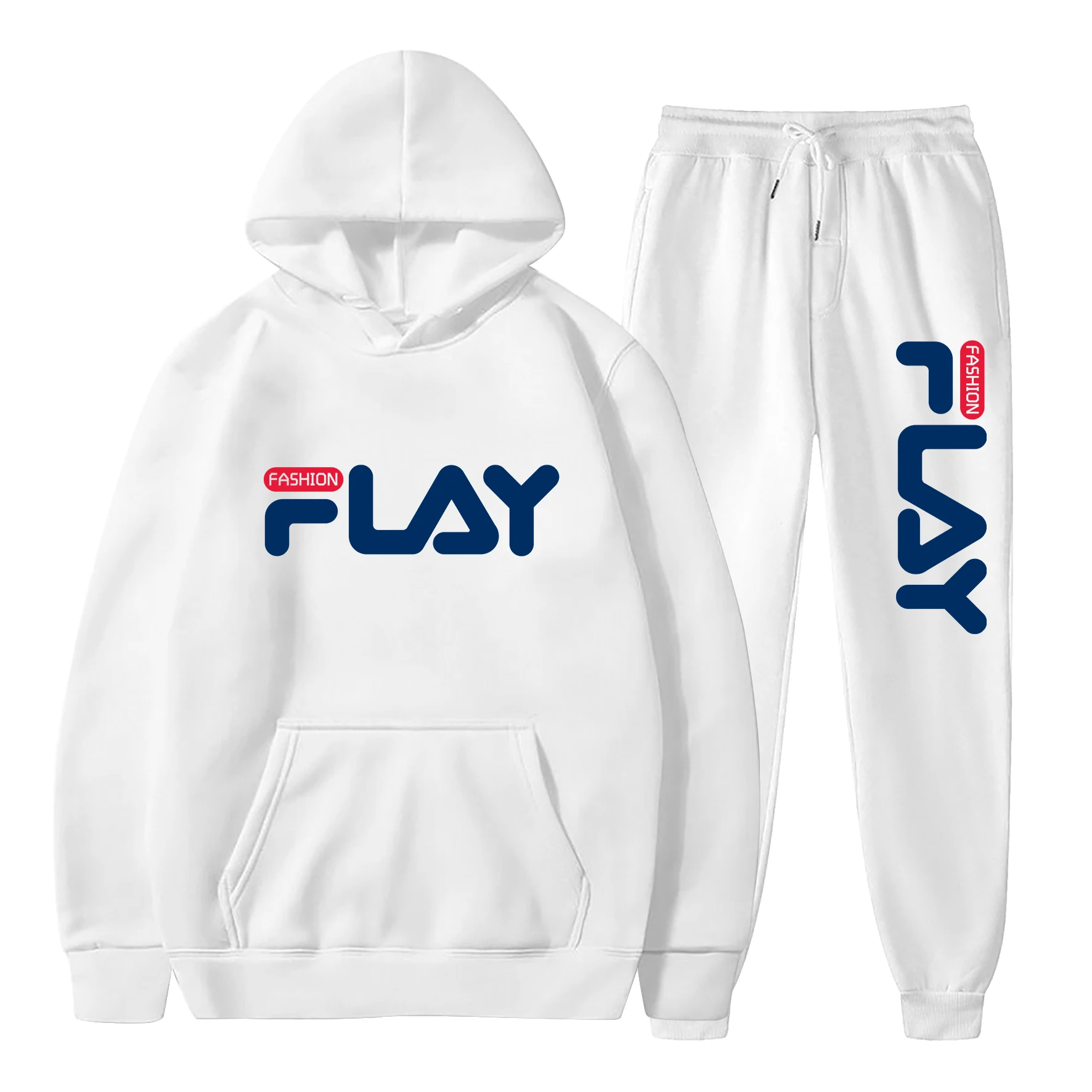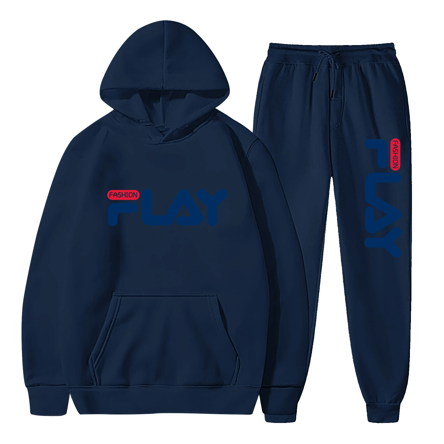 봄과 가을 신상 레터 프린트 벨벳 후드티와 바지 세트 – 청년 남녀 패션 캐주얼 스포츠 2피스 세트