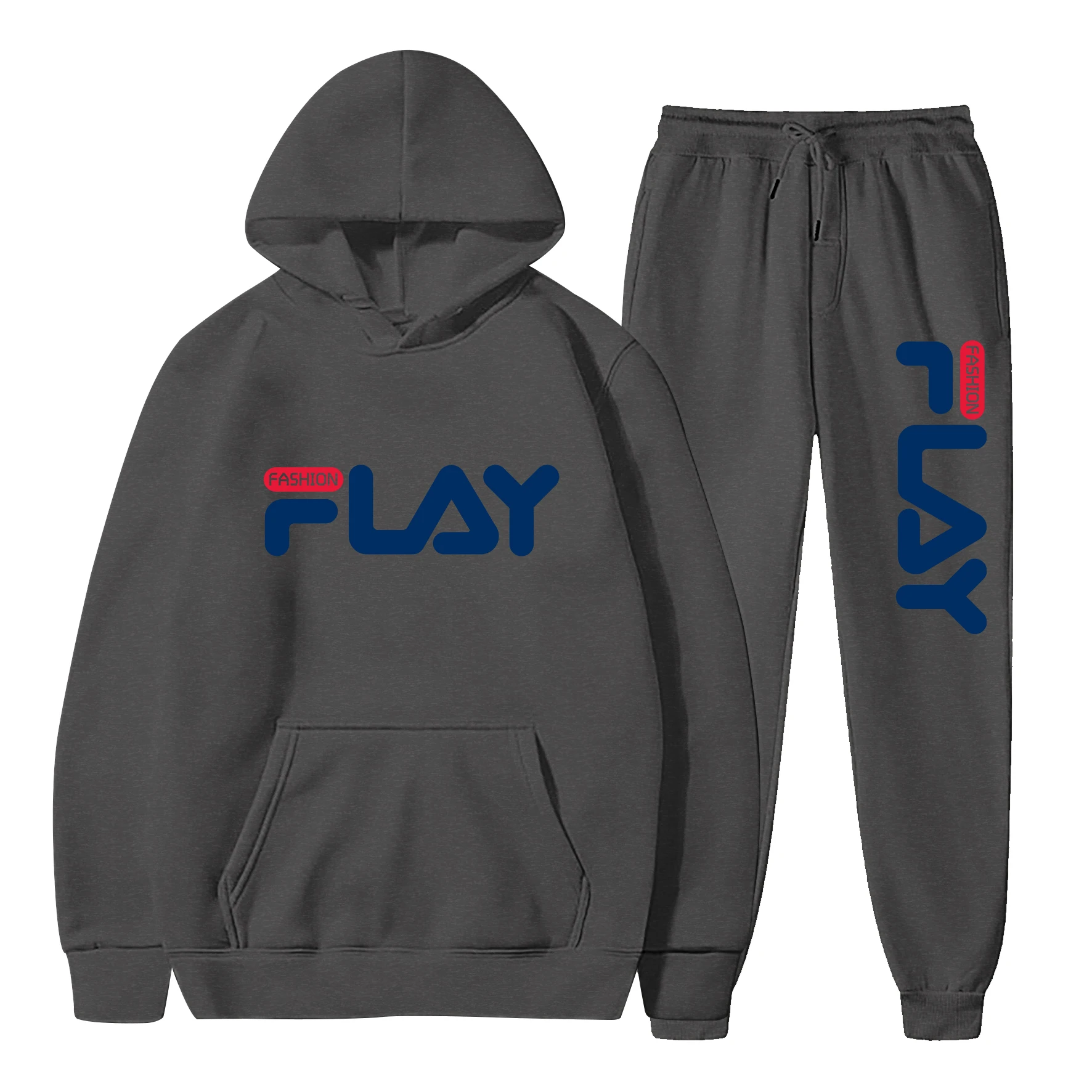 봄과 가을 신상 레터 프린트 벨벳 후드티와 바지 세트 – 청년 남녀 패션 캐주얼 스포츠 2피스 세트