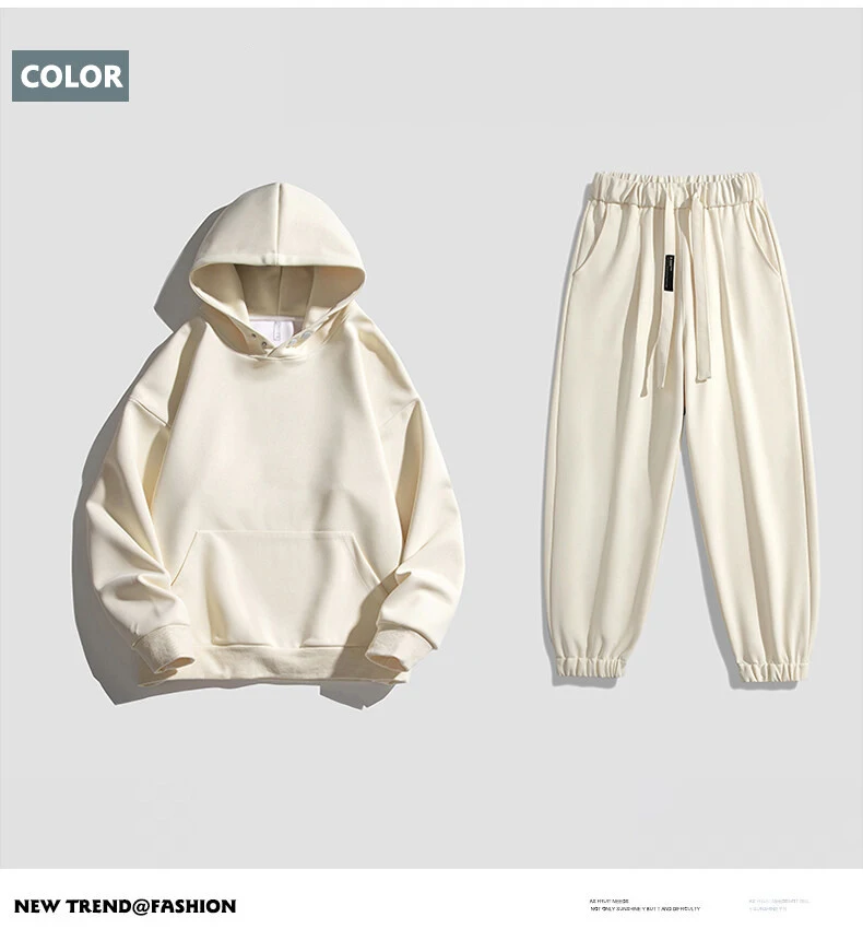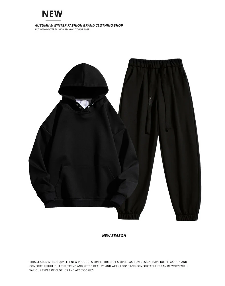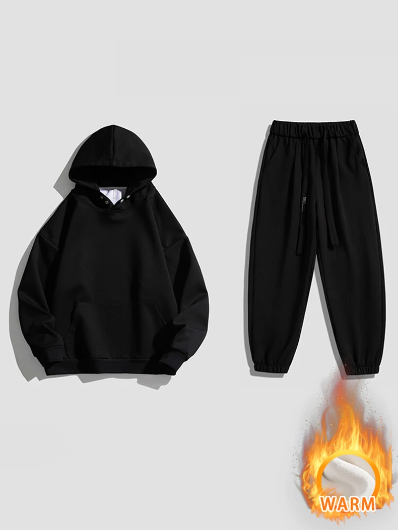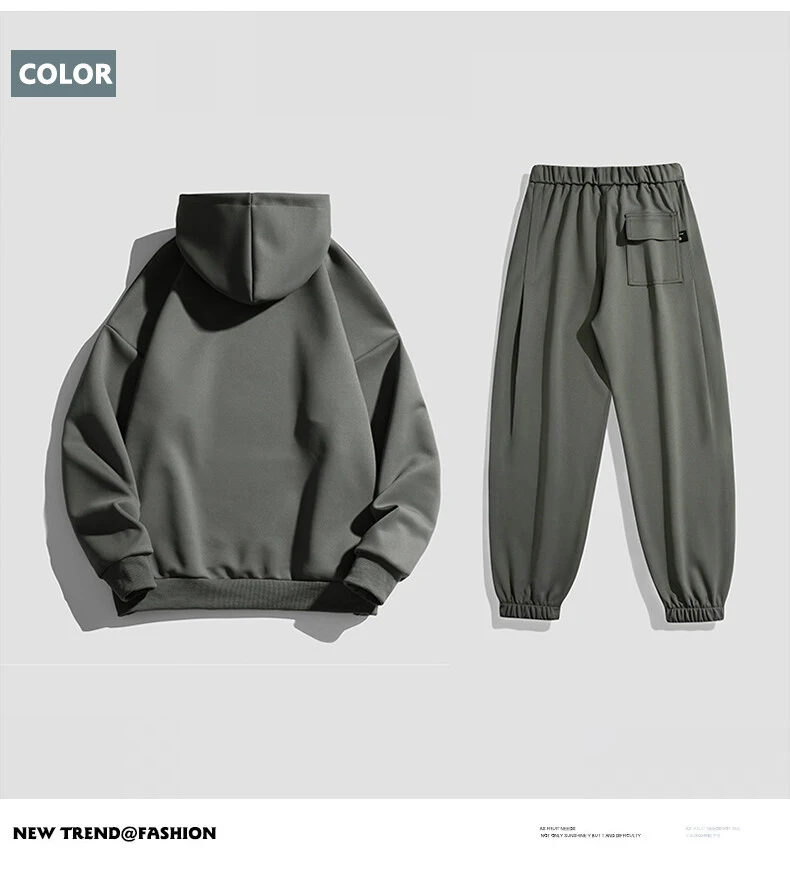 봄 가을 남성 정장 두꺼운 방한 방풍 후드 긴팔 바지 단색 캐주얼 스포츠 투피스 러닝 스포츠 세트