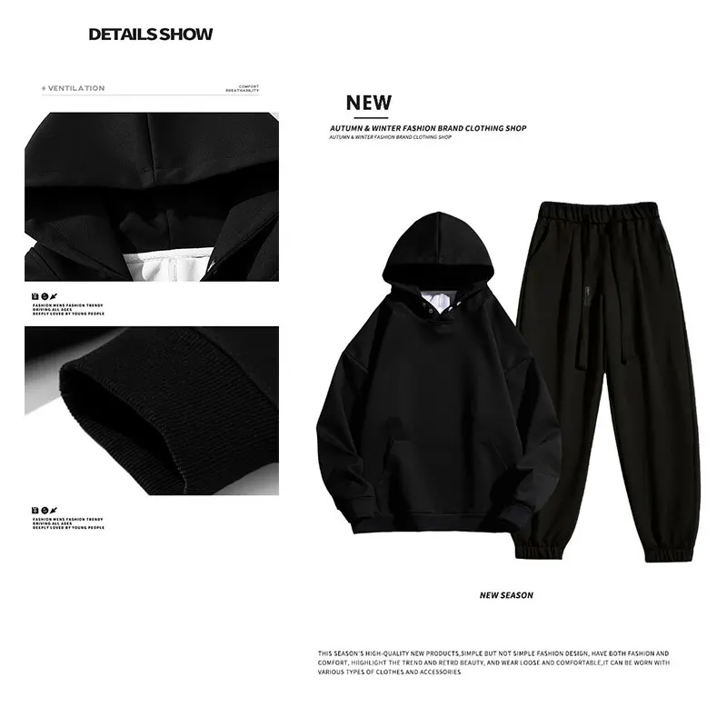 봄 가을 남성 정장 두꺼운 방한 방풍 후드 긴팔 바지 단색 캐주얼 스포츠 투피스 러닝 스포츠 세트