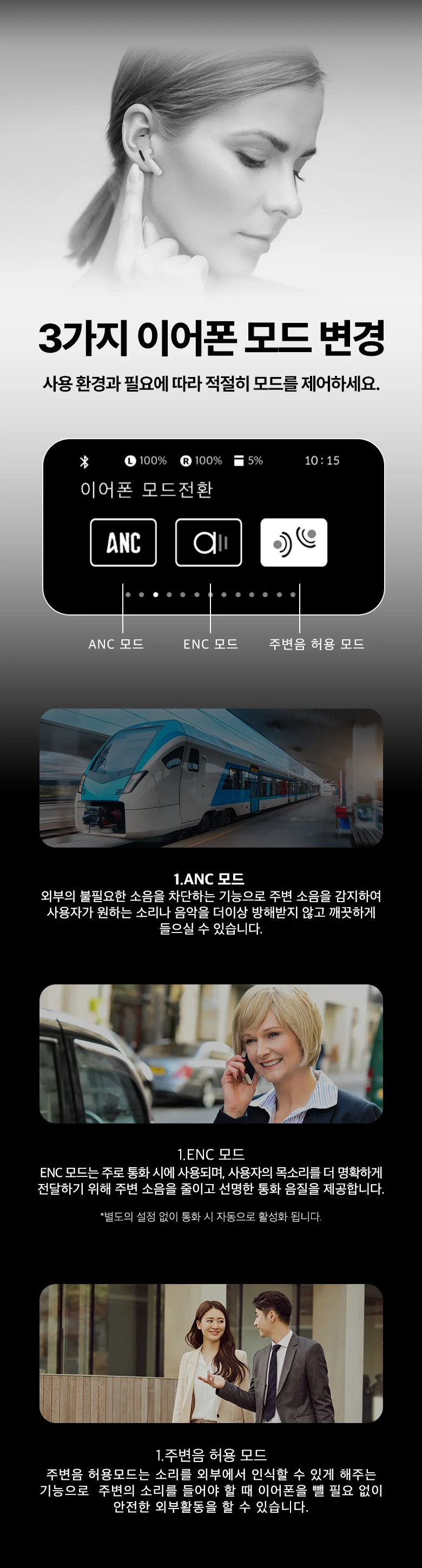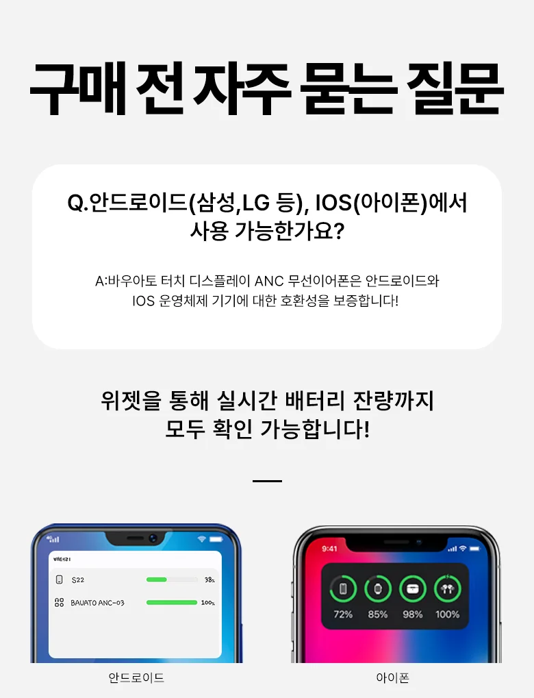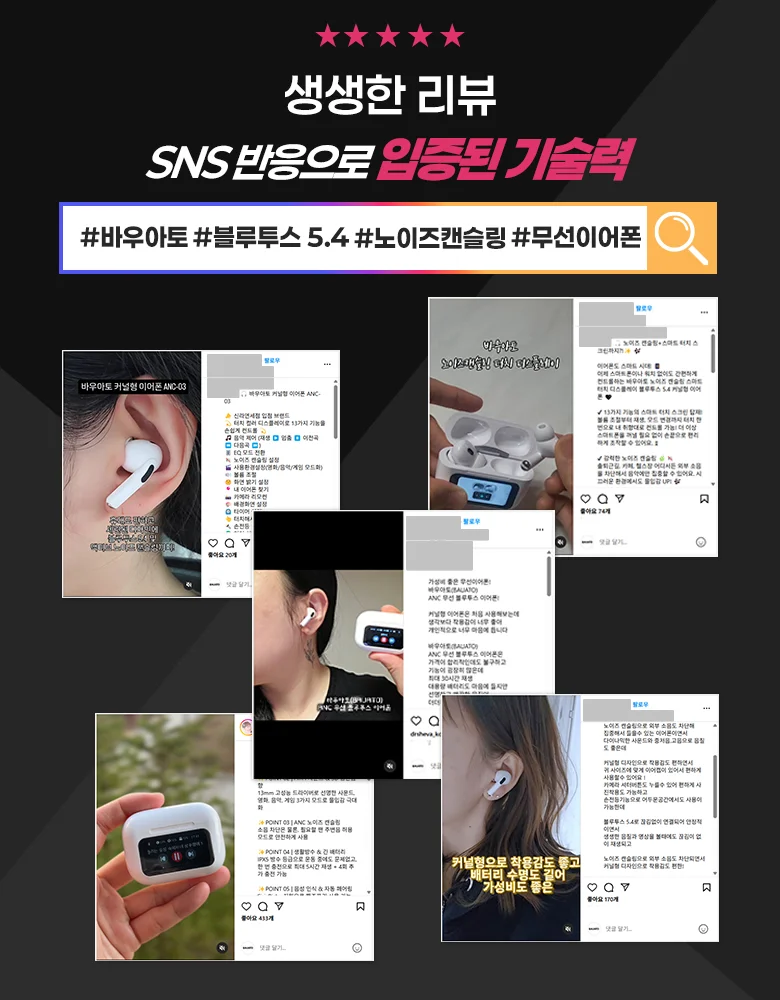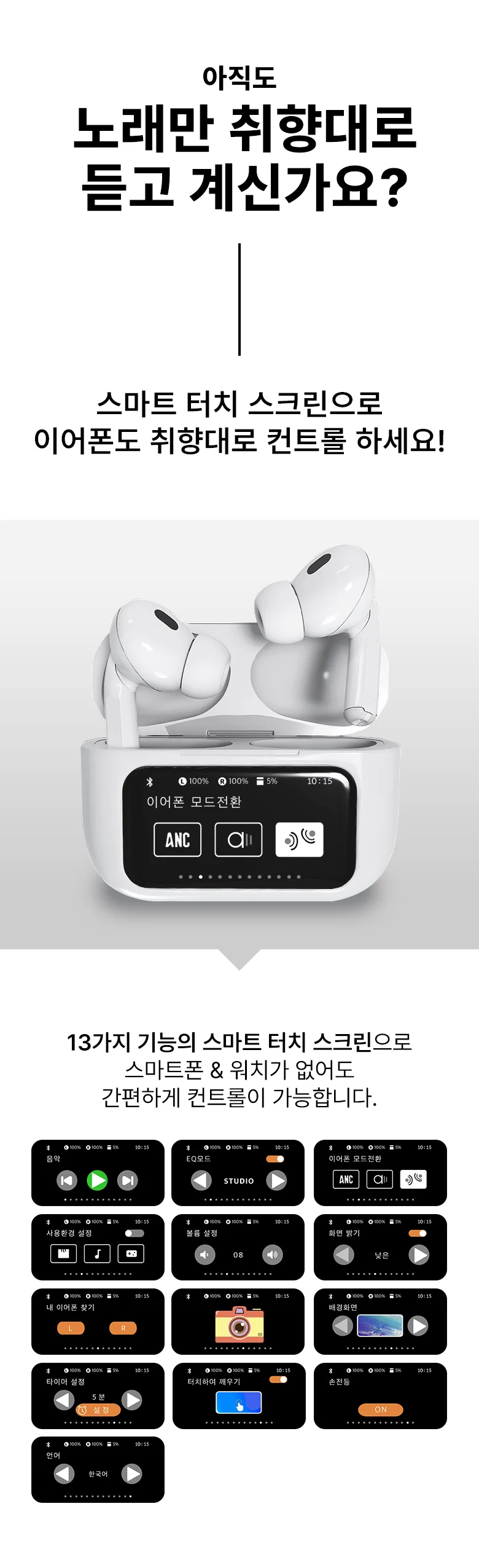 [블루투스 5.4] 바우아토 ANC 액정형 노이즈 캔슬링 무선 블루투스 5.4 이어폰 noise canceling wireless