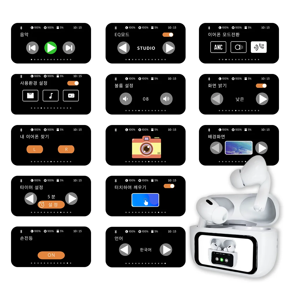 [블루투스 5.4] 바우아토 ANC 액정형 노이즈 캔슬링 무선 블루투스 5.4 이어폰 noise canceling wireless