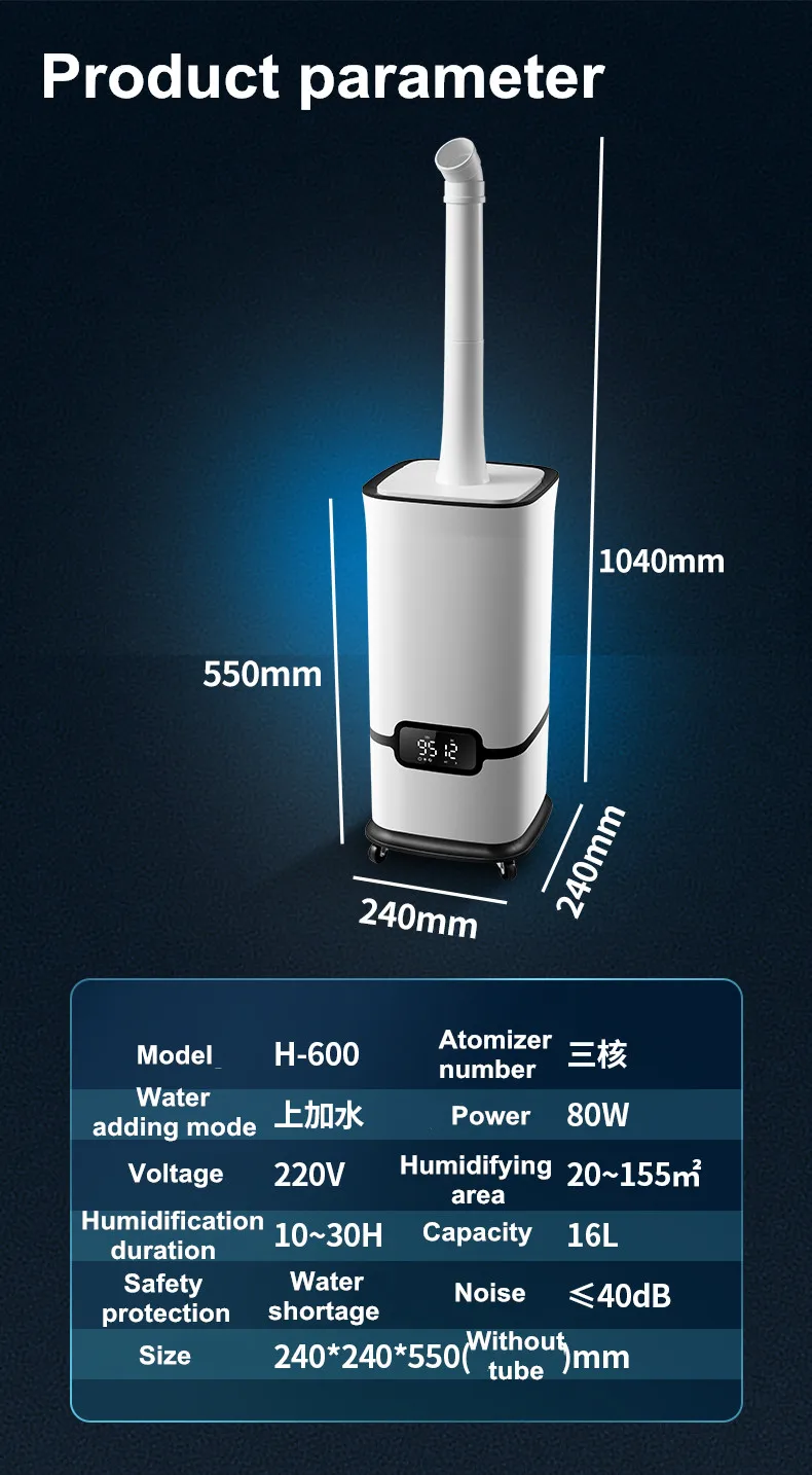 - 미스트 분출 (갤런 / 일): 800ML/H / 1000ML/H