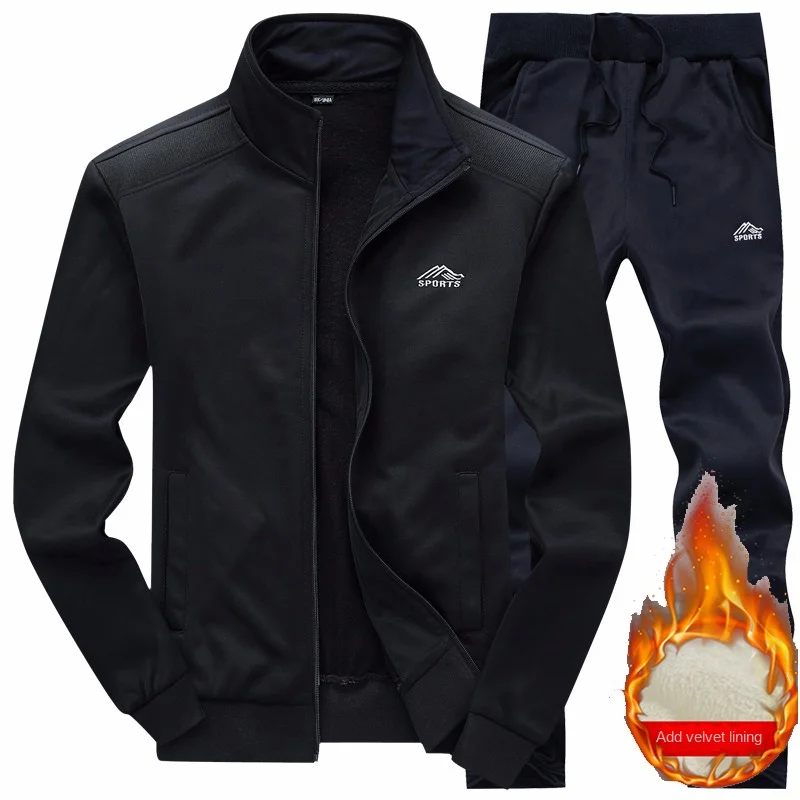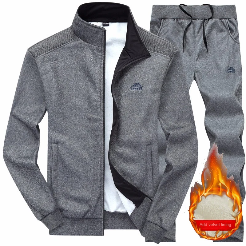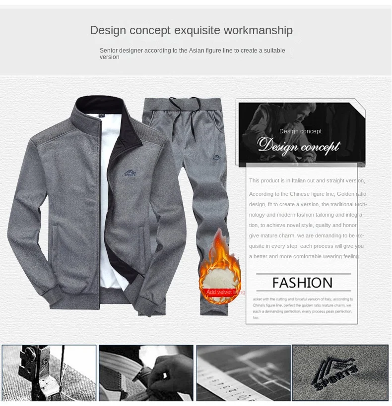새로운 세트, 플러시하고 두꺼운 따뜻한 자수 가디건, 투피스 스포츠 슈트, 남성용 긴팔 바지, 니트 캐주얼 슈트