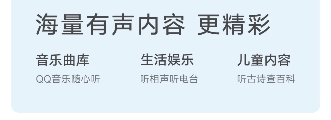 *본 제품의 음악 서비스는 QQ Music에서 제공하며, 이는 파트너의 저작권 및 기술에 의해 제한됩니다.QQ Music 사용자(무료 및 유료 모두)는 다양한 하드웨어 단말기에서 다양한 음악 라이브러리를 들을 수 있습니다.회원 계약이 우선합니다.자세한 내용은 Xiaoai Speaker 앱의 QQ Music 회원 구매 페이지를 참조하세요.