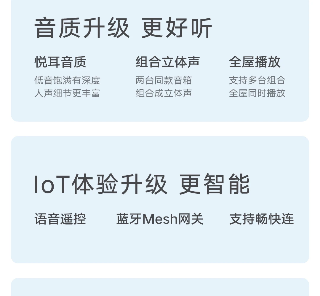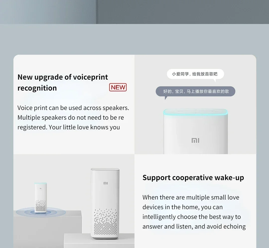 2세대 샤오미 AI 스피커의 주요 업그레이드는 사용자 자신의 ID와 동일한 음성 인식 기능을 추가한 것입니다.당신의 취향에 더 잘 맞는 음악 콘텐츠가 재생됩니다.그리고 음성 인식 기능은 여러 스피커에서 공유하여 사용할 수 있습니다. 즉, 집에 여러 개의 샤오미 AI 스피커가 있을 경우, 하나의 음성 인식 정보로 모든 샤오아이 친구들에게 사용자를 인식시킬 수 있어, 각 기기마다 반복적으로 음성 인식을 등록할 필요가 없습니다.