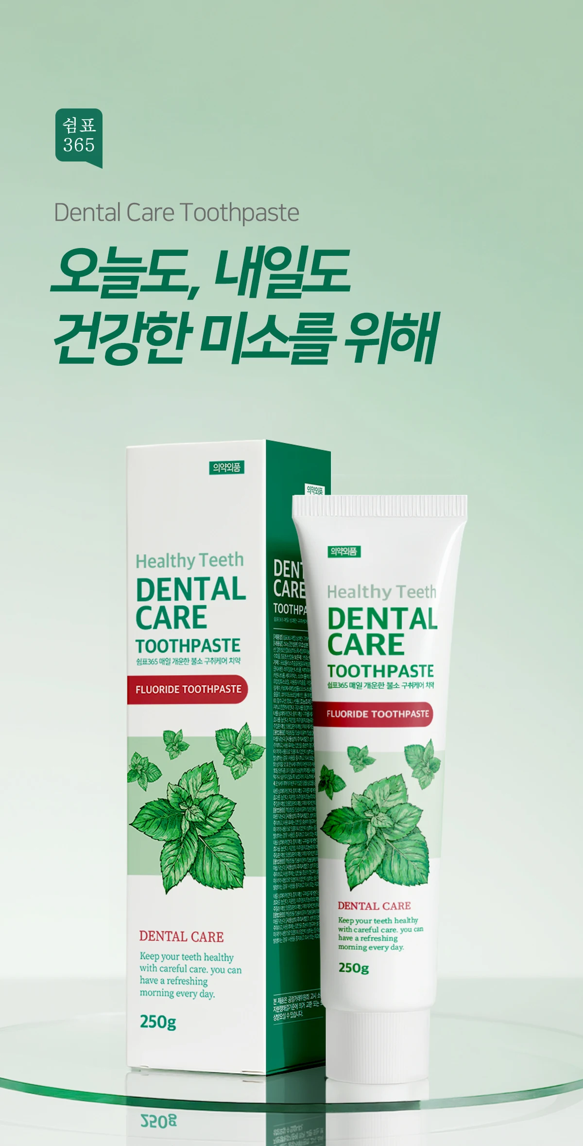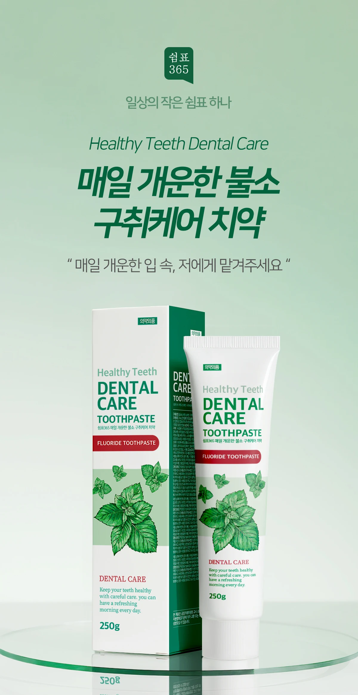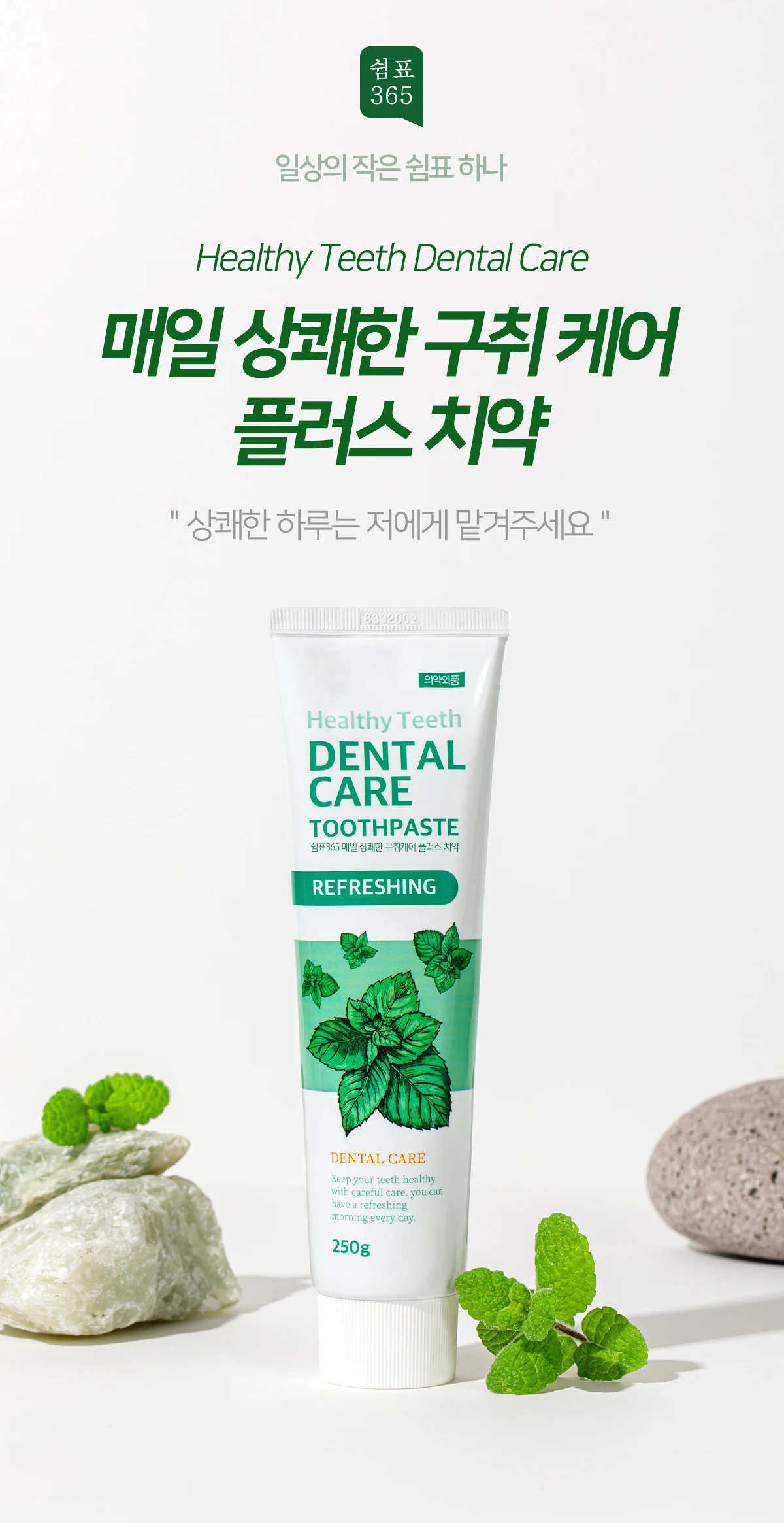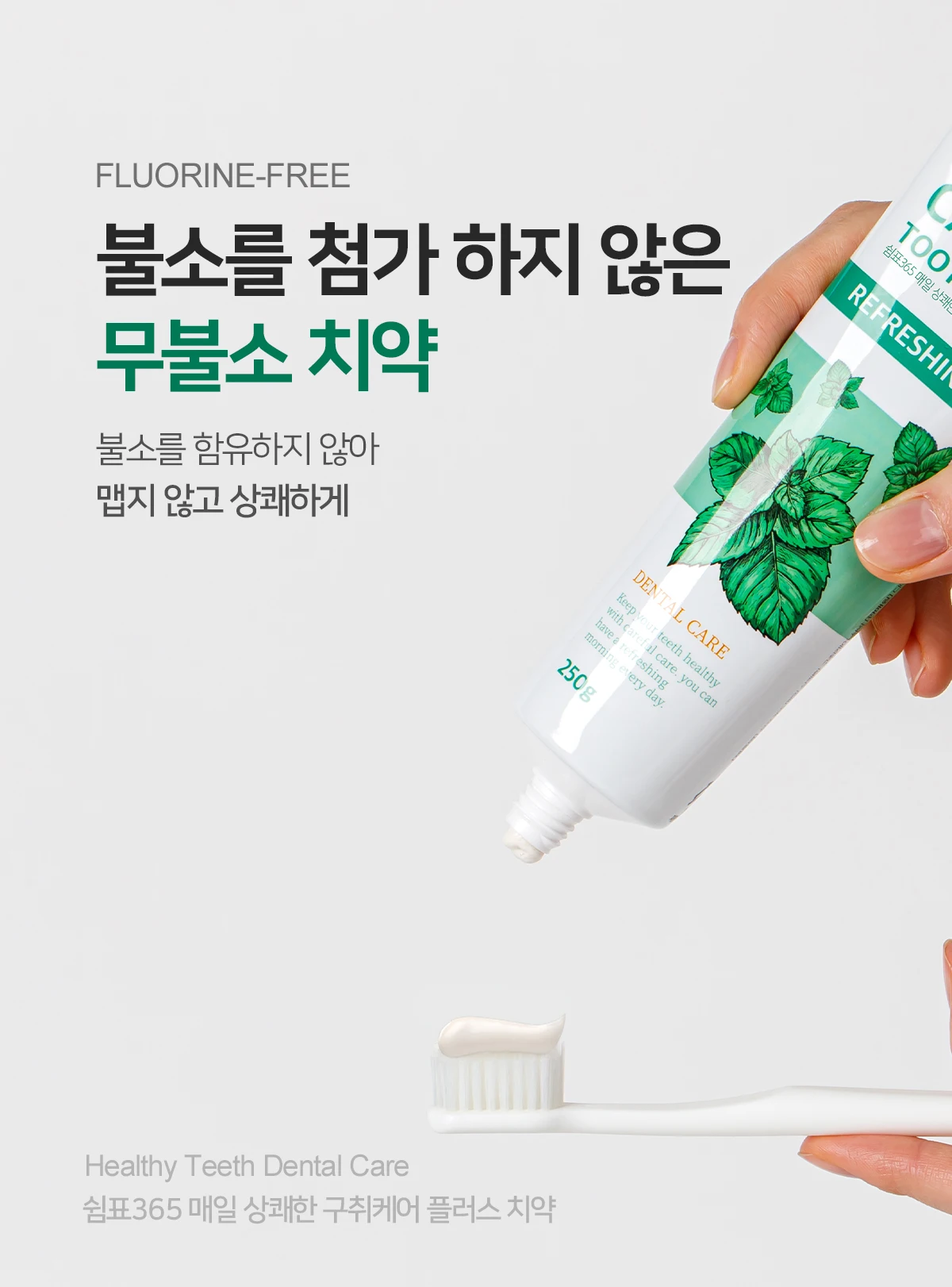 쉼표365 매일 상쾌한 구취케어 대용량 치약 250g x 8개입 잇몸케어 무불소 입냄새제거 치태제거