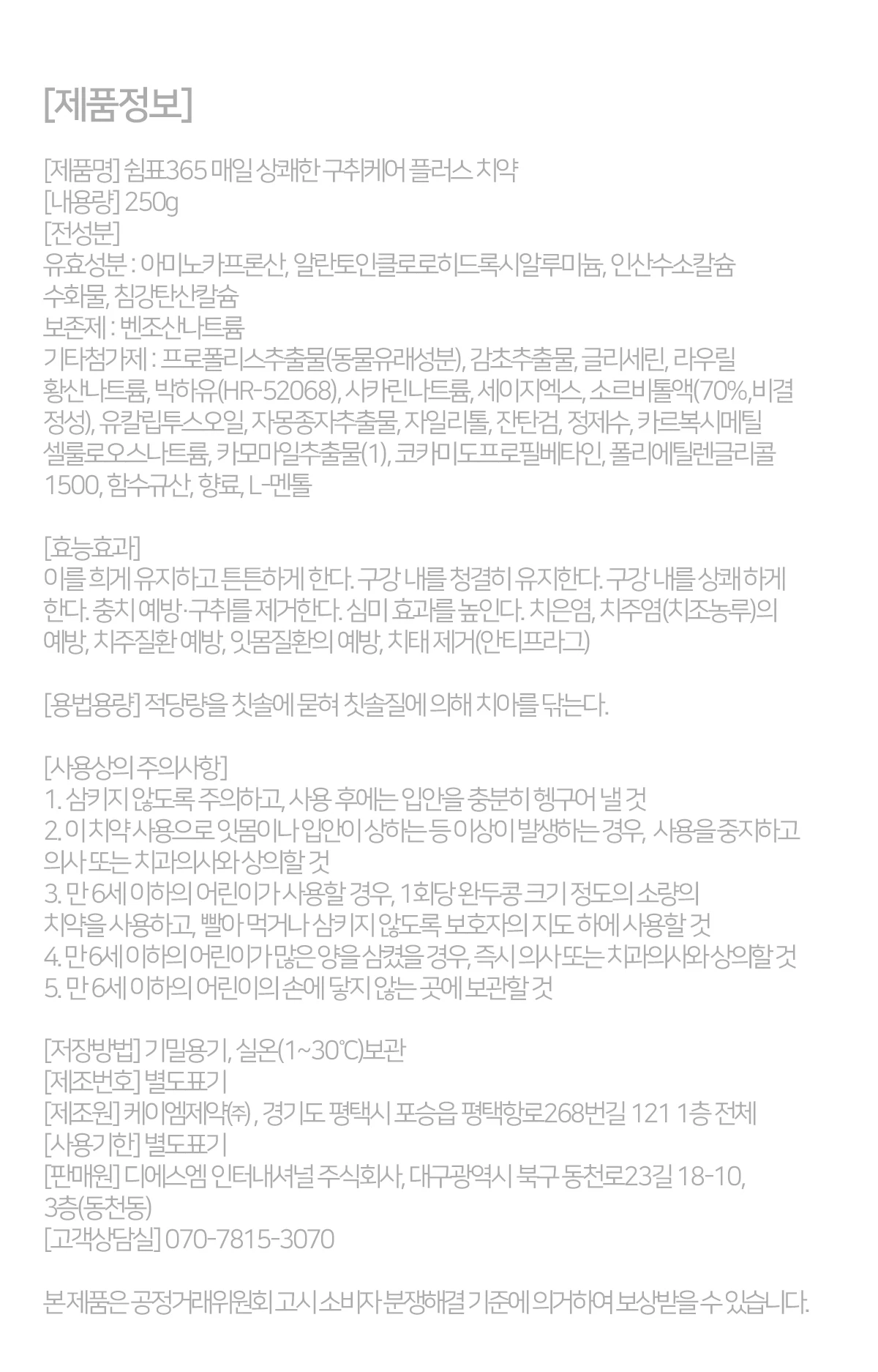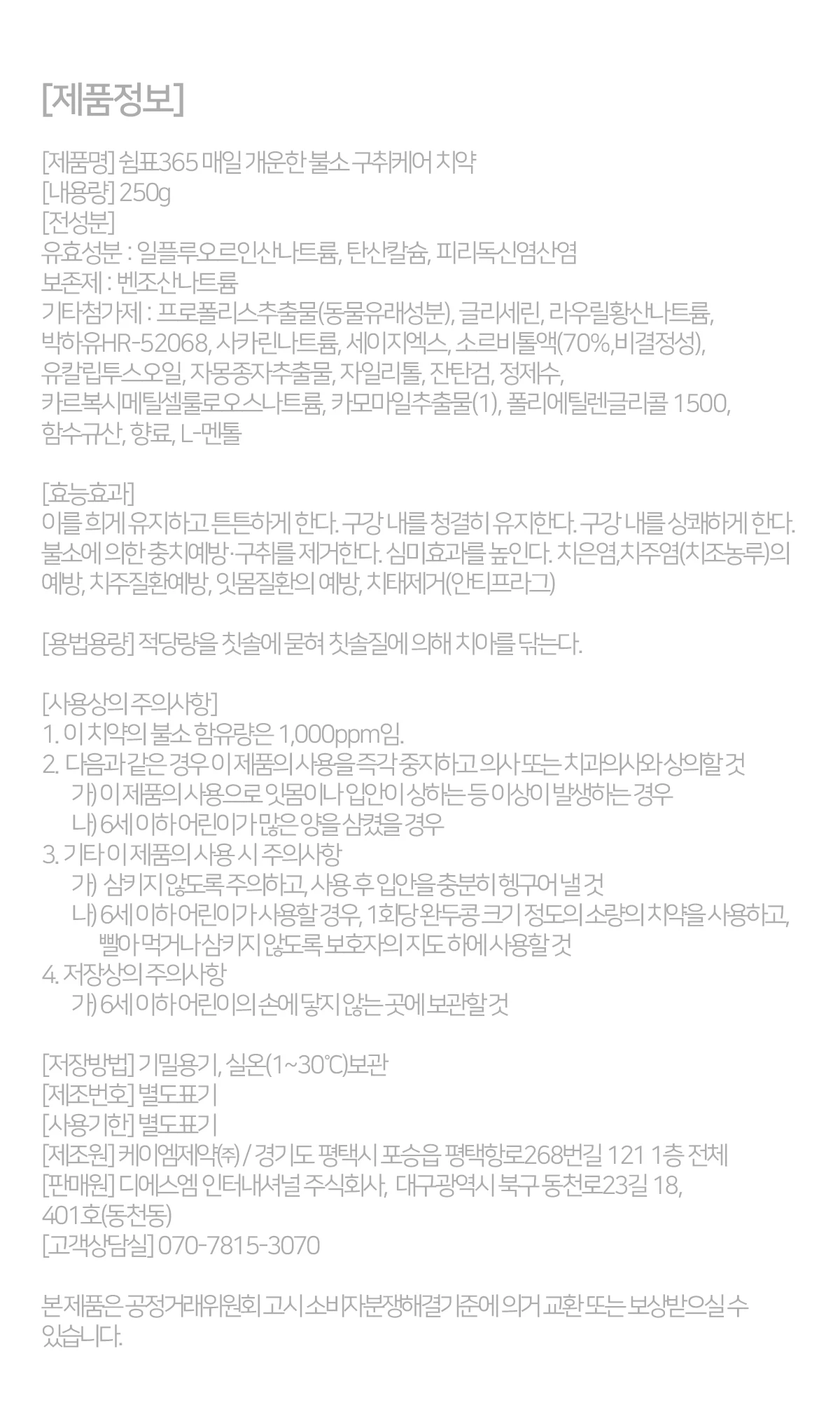 “쉼표365 매일 상쾌한 구취케어 대용량 치약 250g x 8개입 잇몸케어 무불소 입냄새제거 치태제거”의 첫 상품평을 남겨주세요 응답 취소