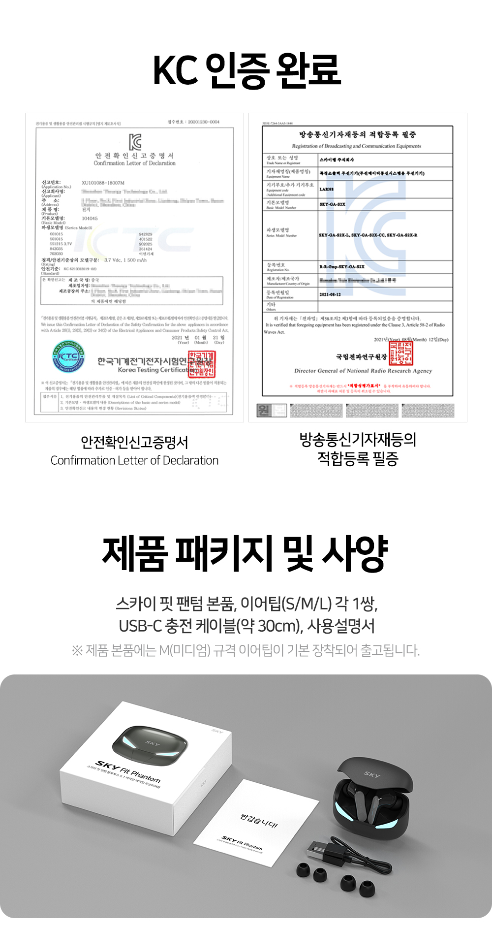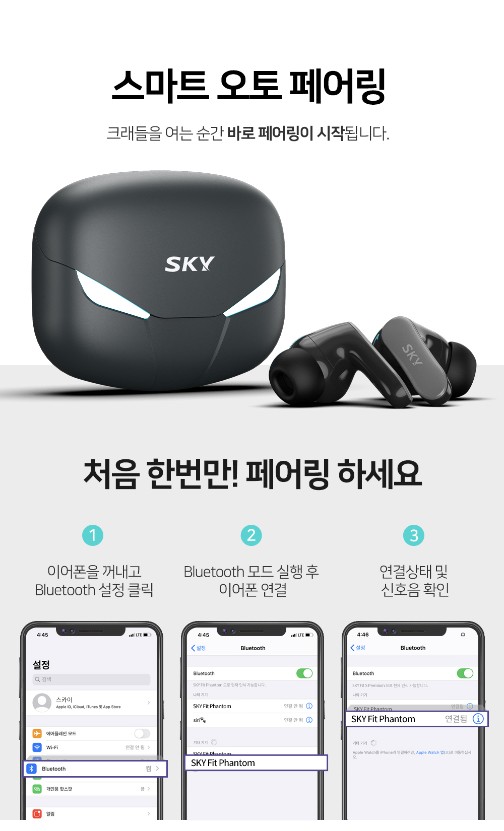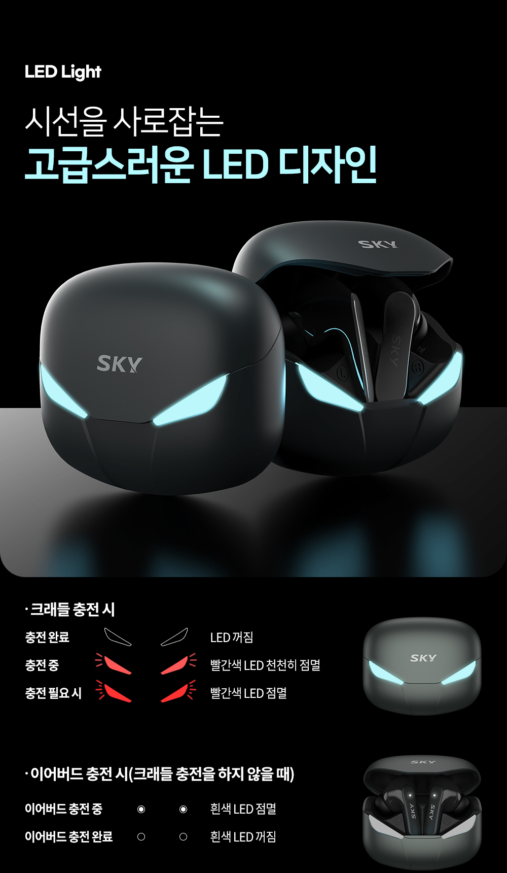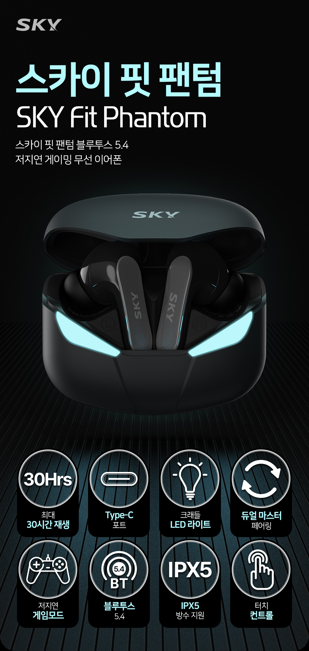 스카이 핏 팬텀 LED 블루투스 게이밍 커널형 무선 이어폰