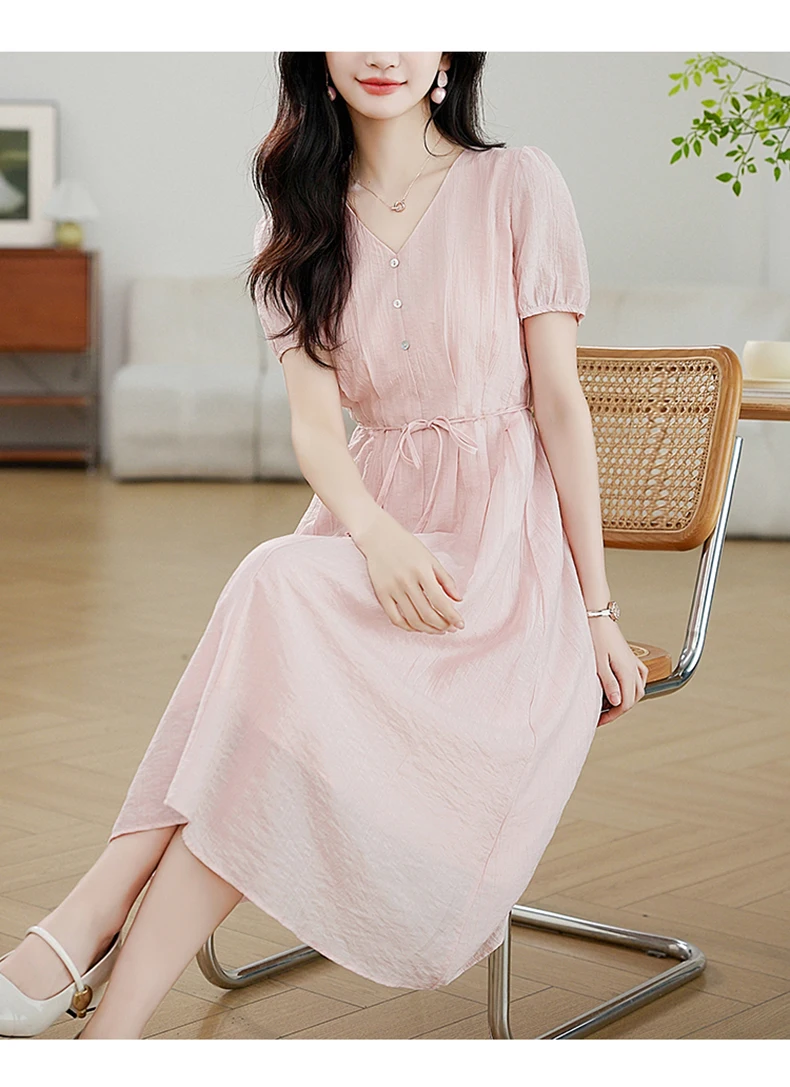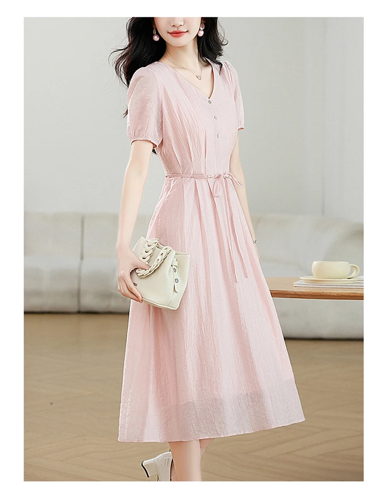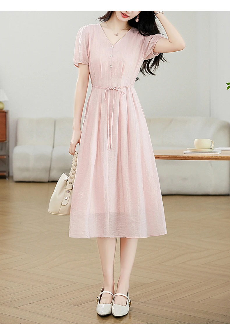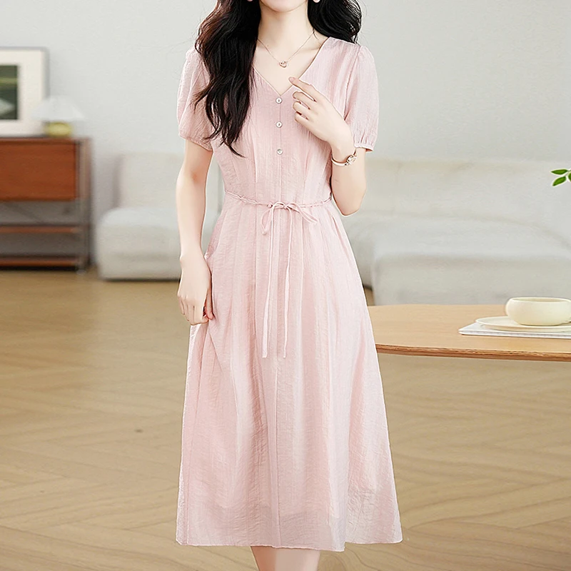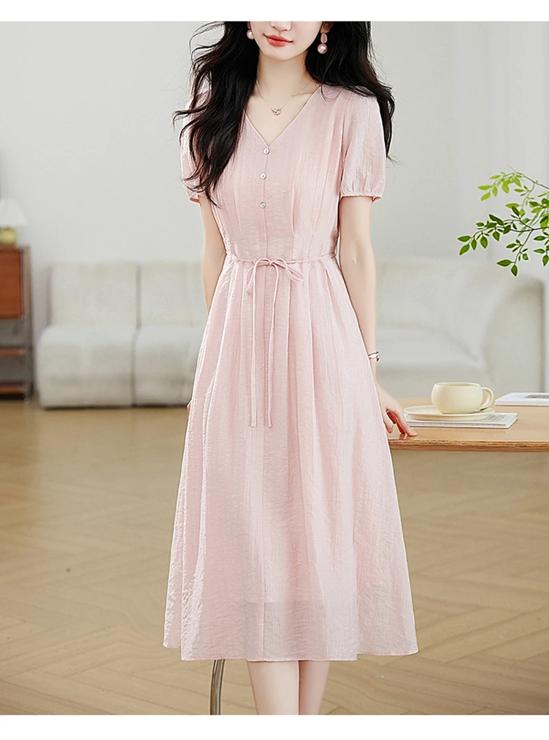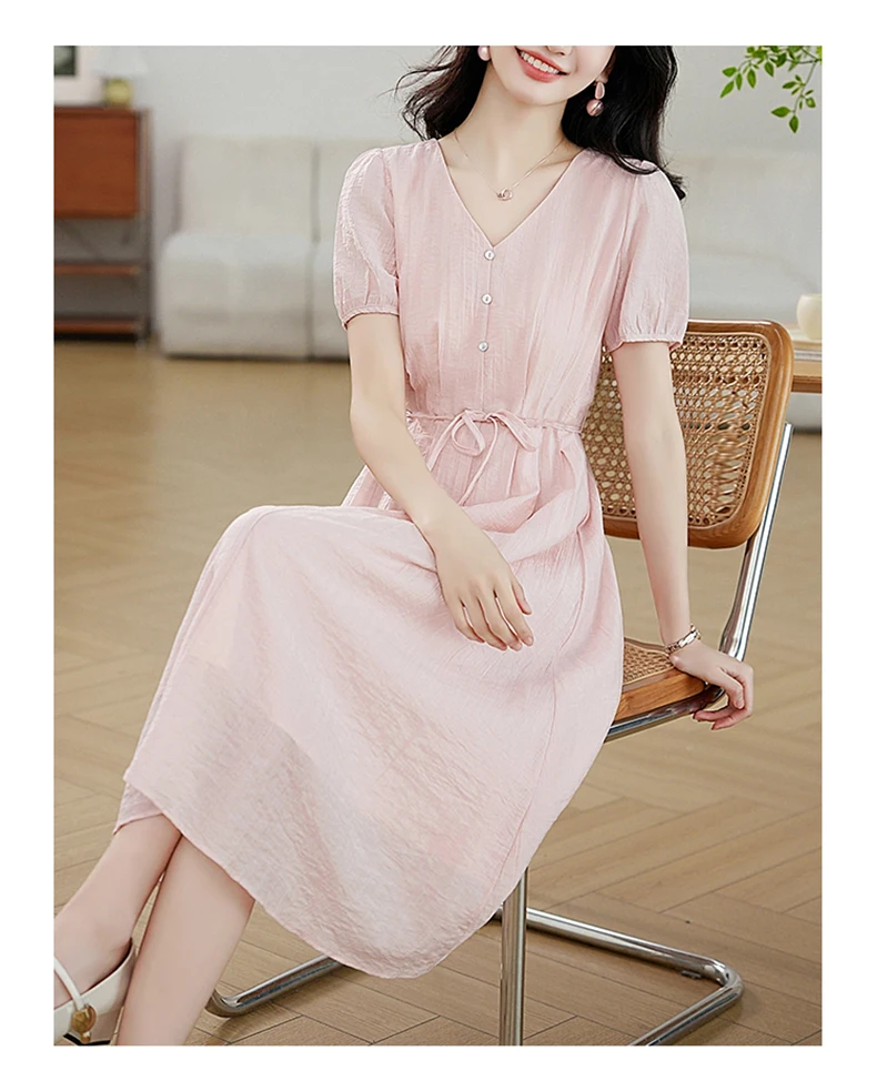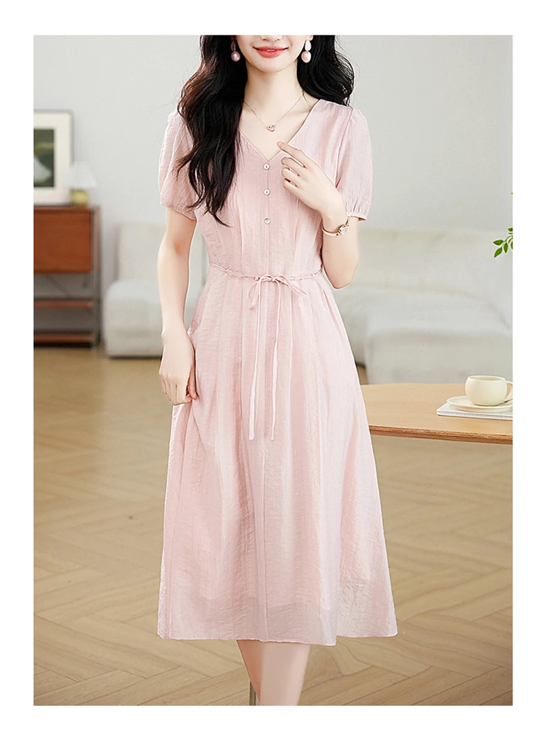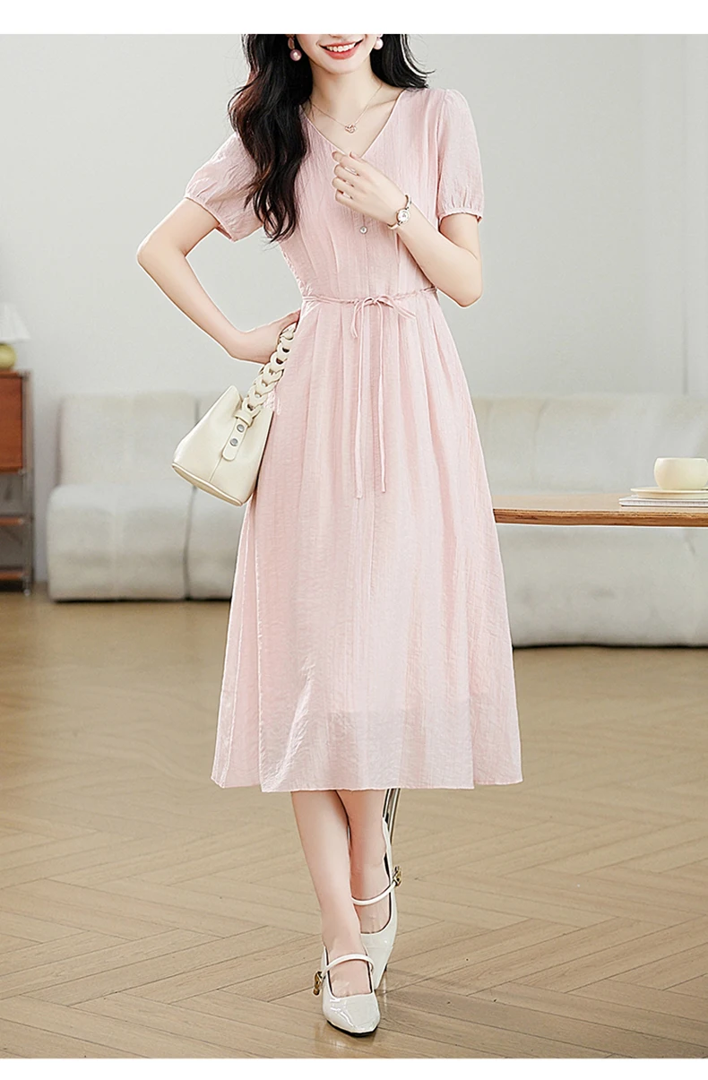 스타일아유 고급무드 여성용 브이넥 리본 스트랩 미디 원피스 깔끔한 데일리룩 OP2281