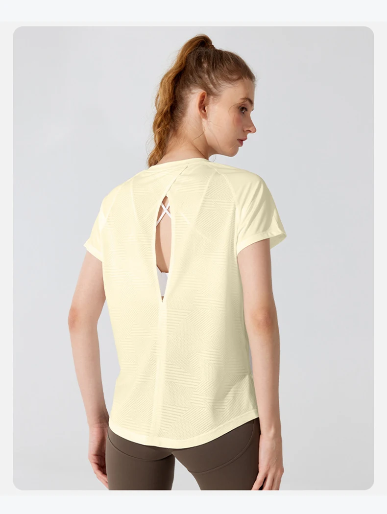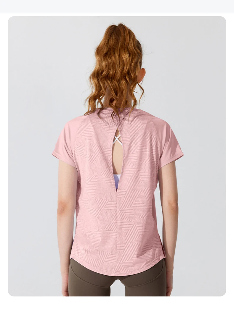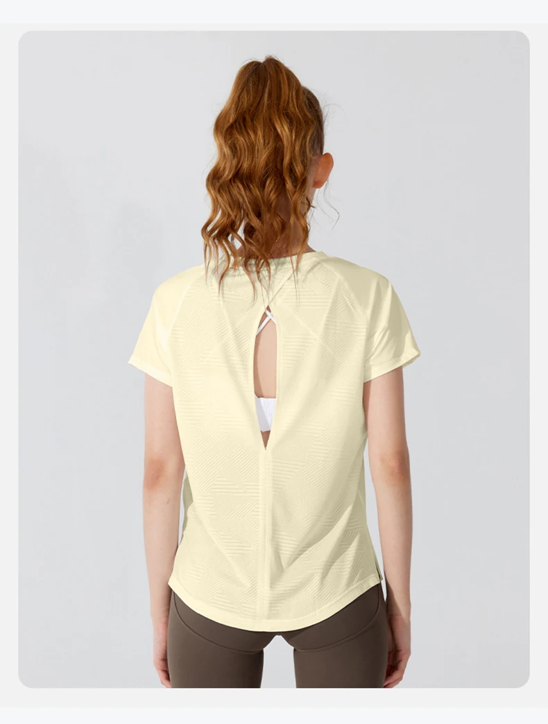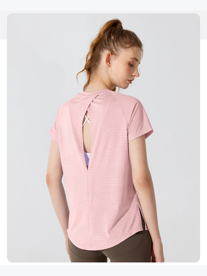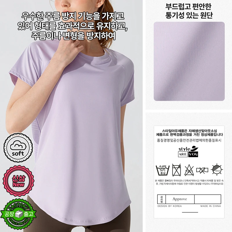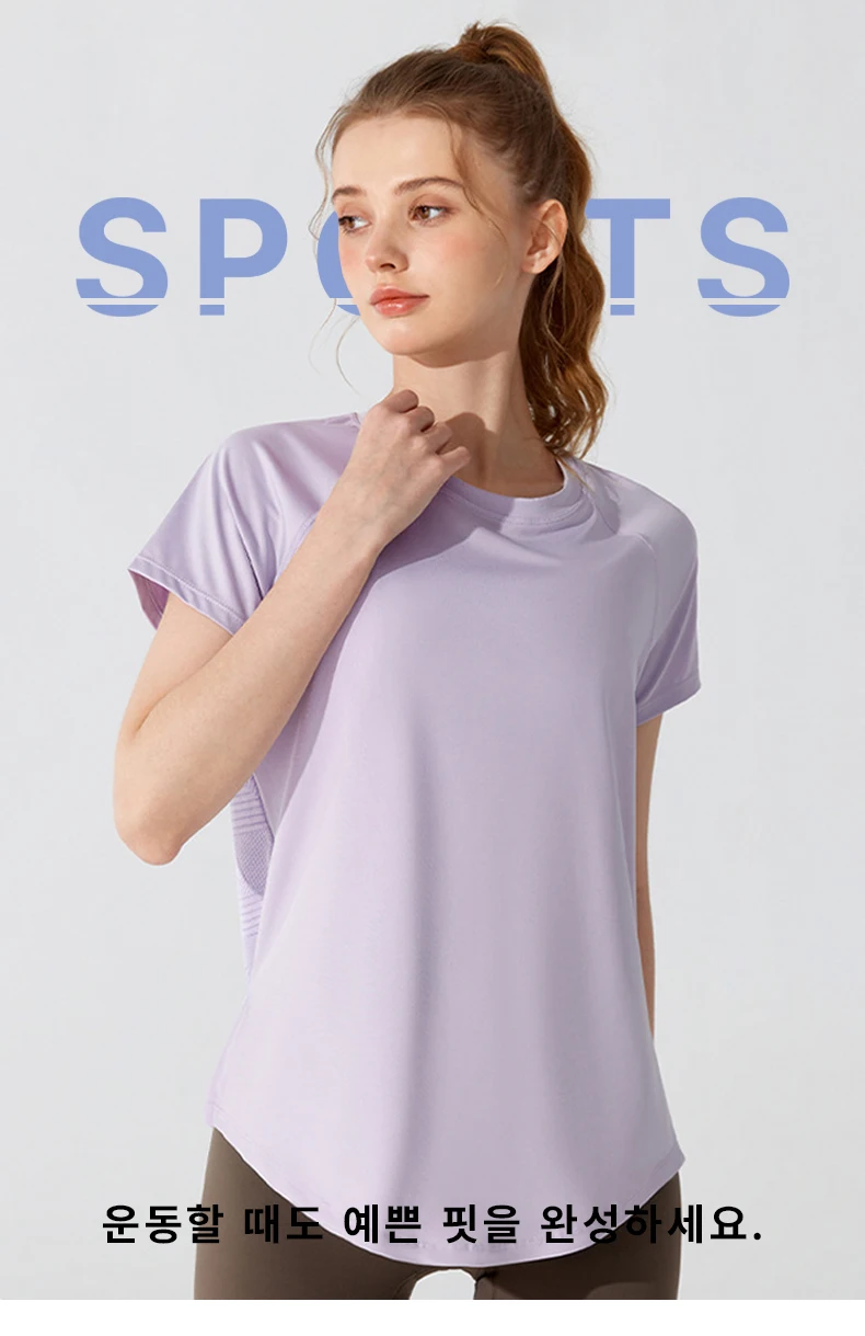 스타일아유 여성 라운드넥 트임 백오픈 숏슬리브 티셔츠 통기성 속건 요가 피트니스 운동상의 YG0139