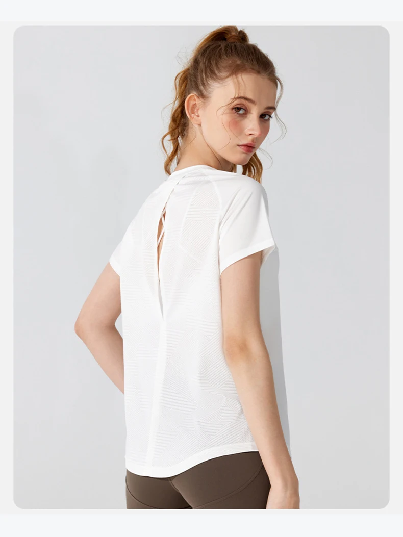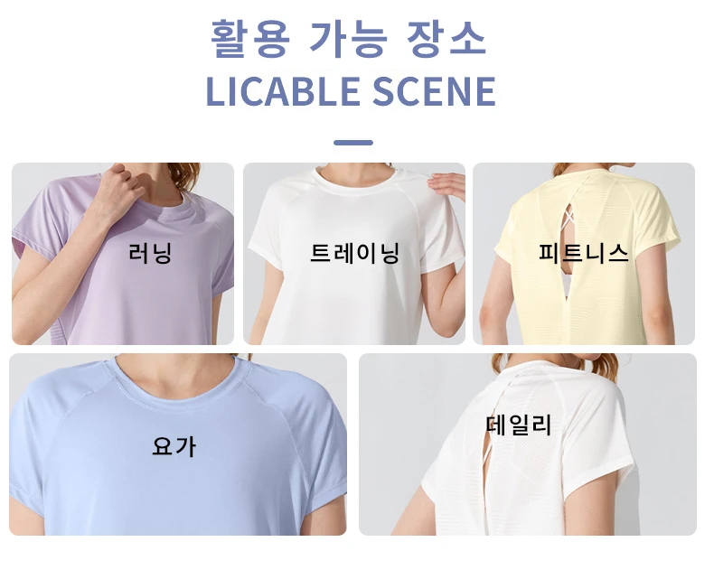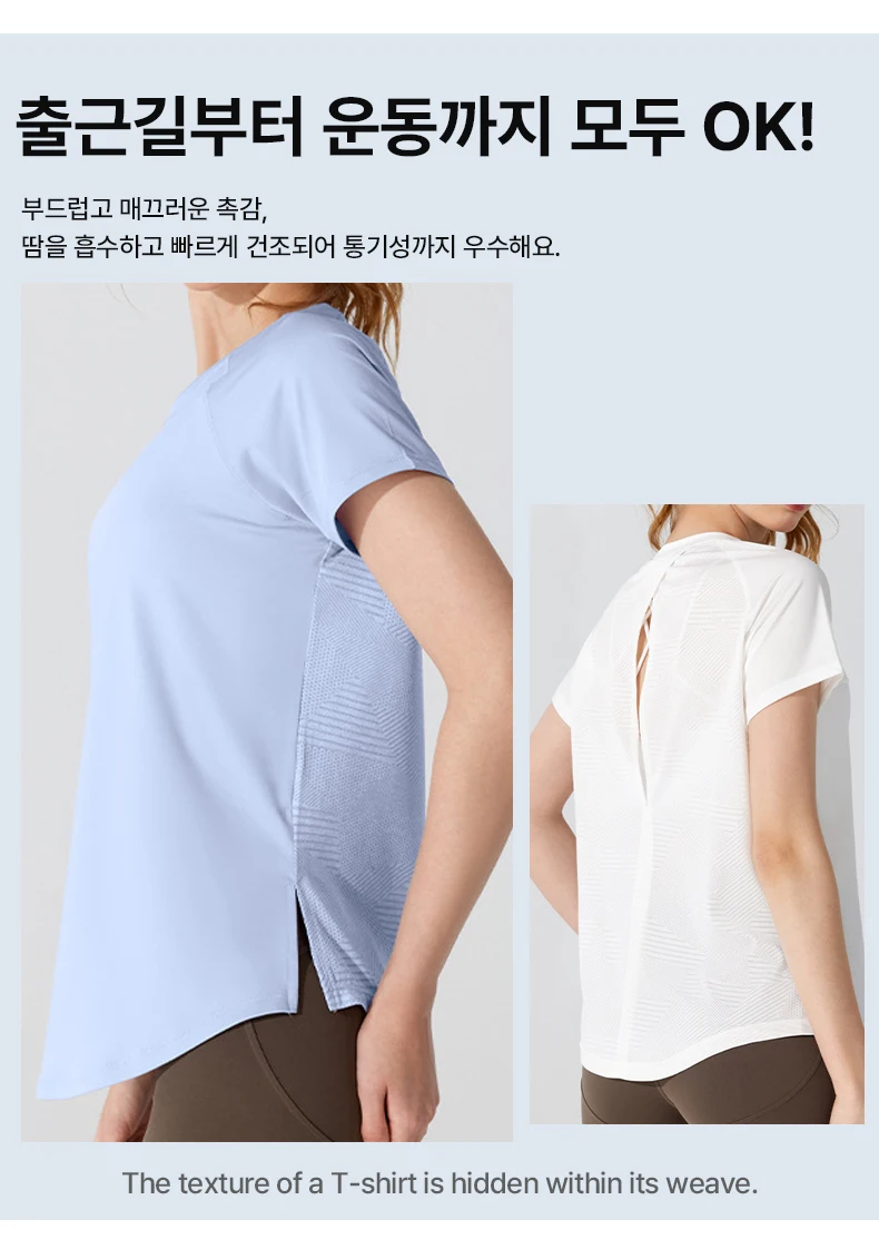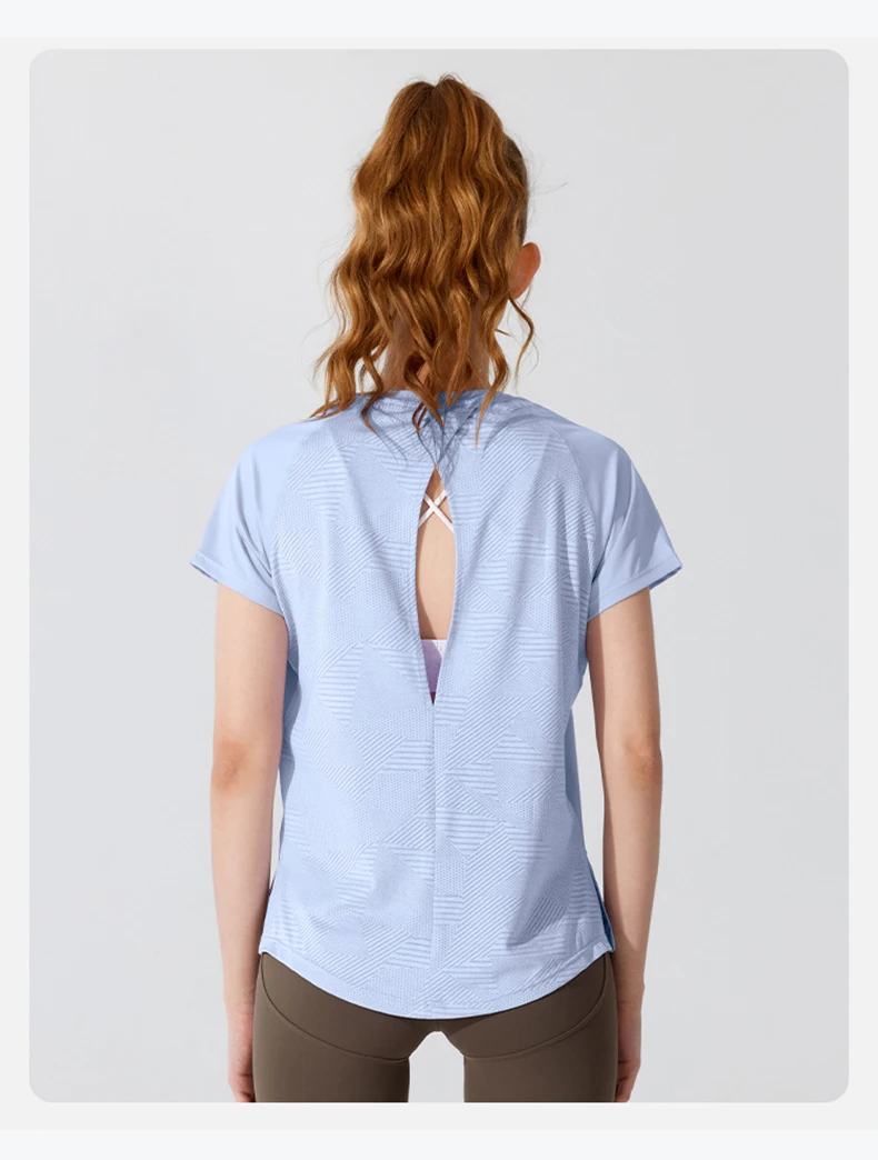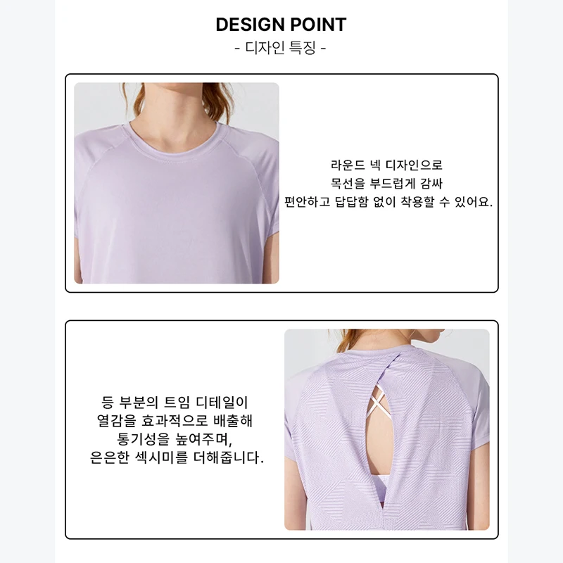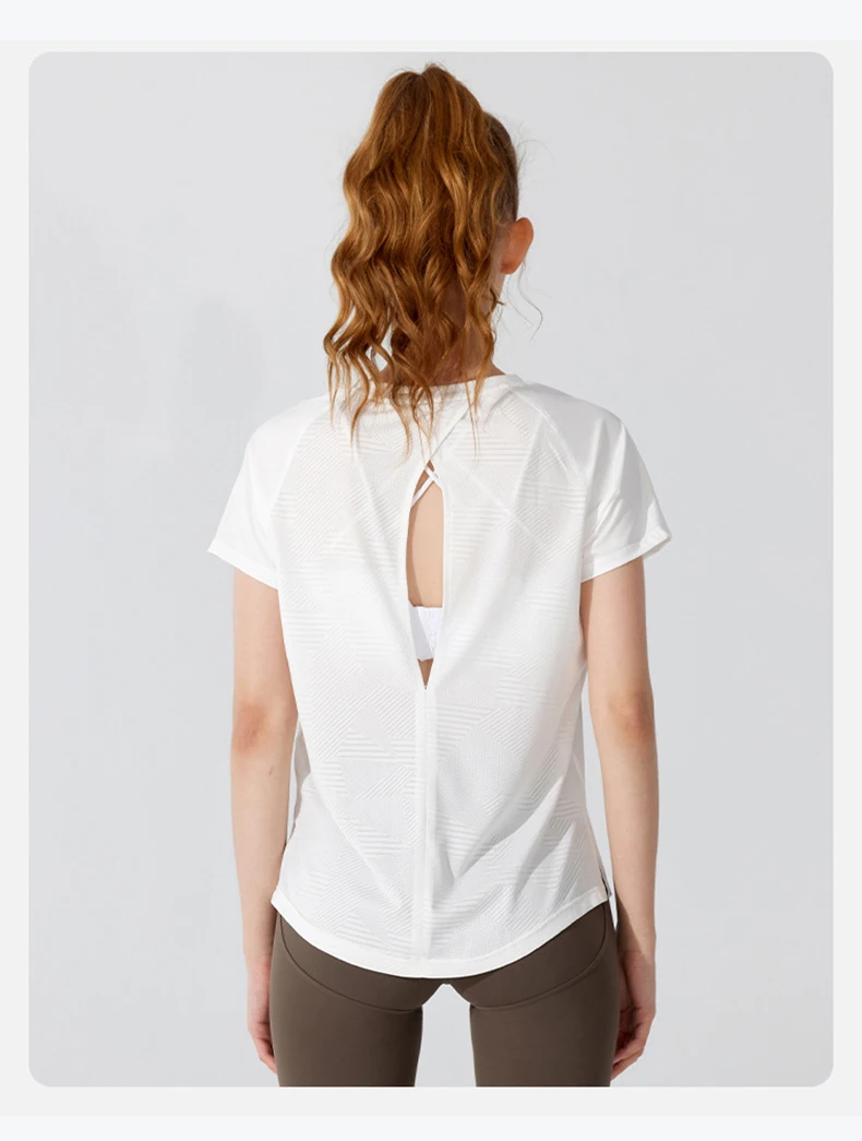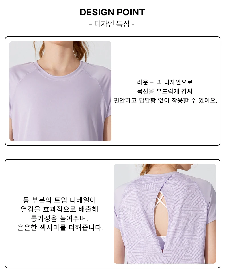 스타일아유 여성 라운드넥 트임 백오픈 숏슬리브 티셔츠 통기성 속건 요가 피트니스 운동상의 YG0139