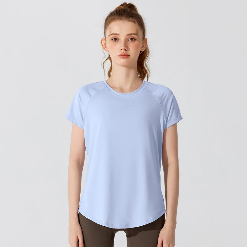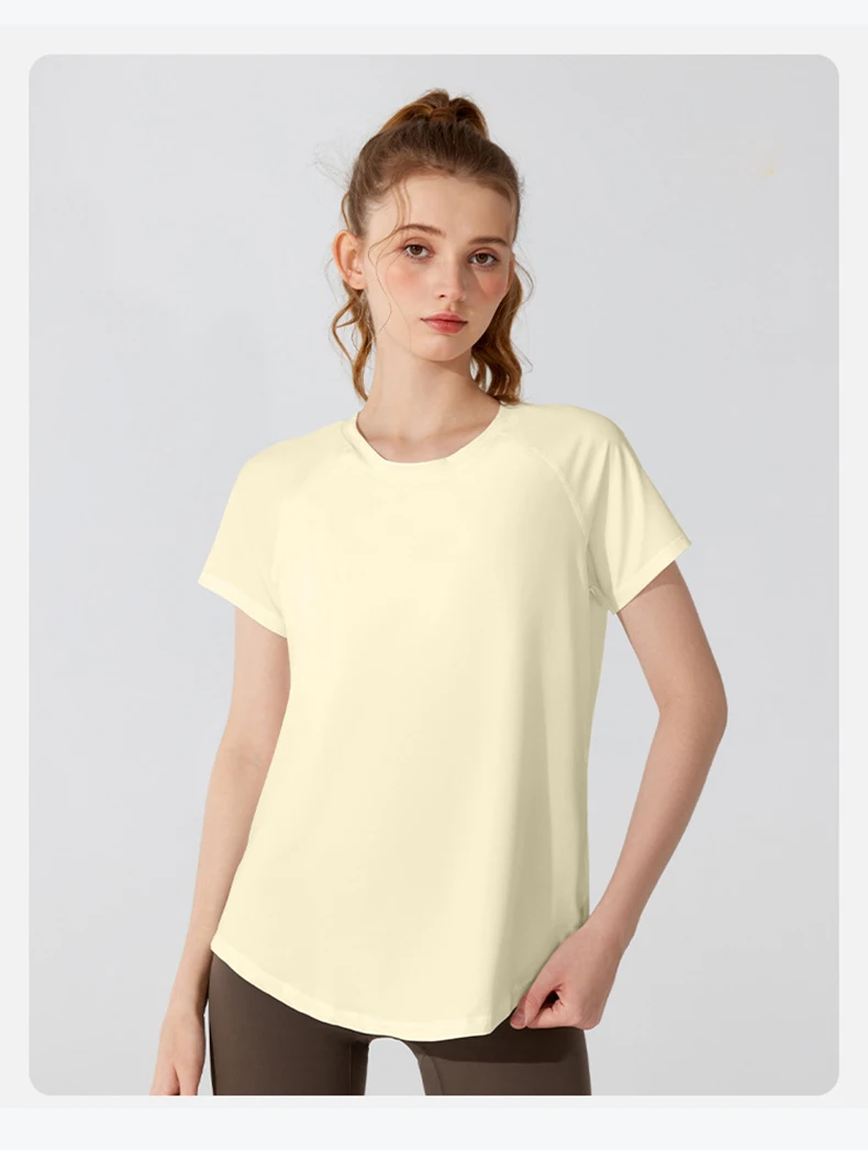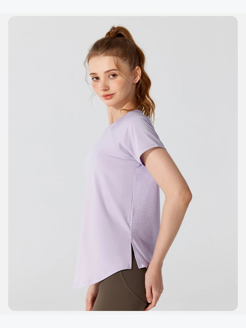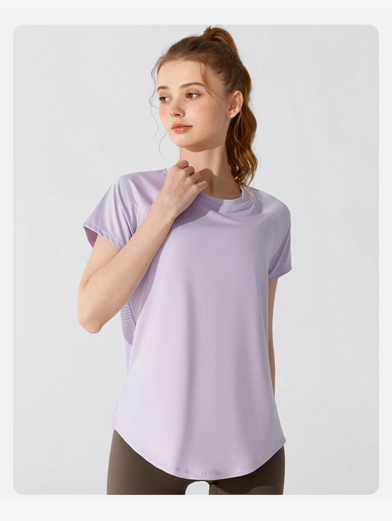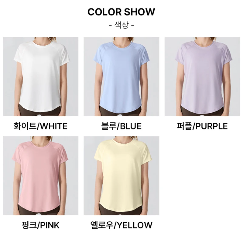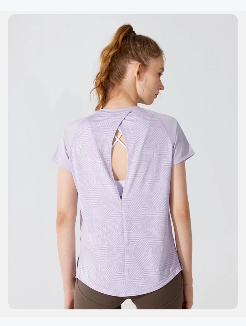 스타일아유 여성 라운드넥 트임 백오픈 숏슬리브 티셔츠 통기성 속건 요가 피트니스 운동상의 YG0139
