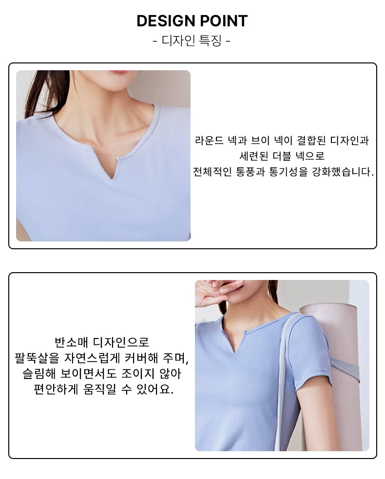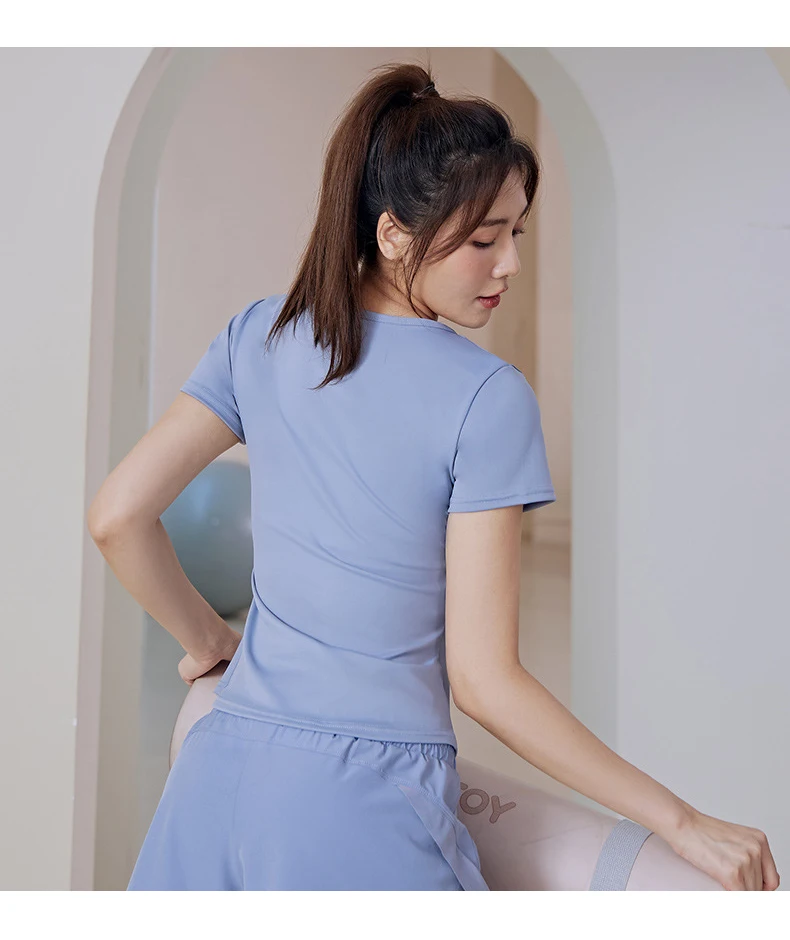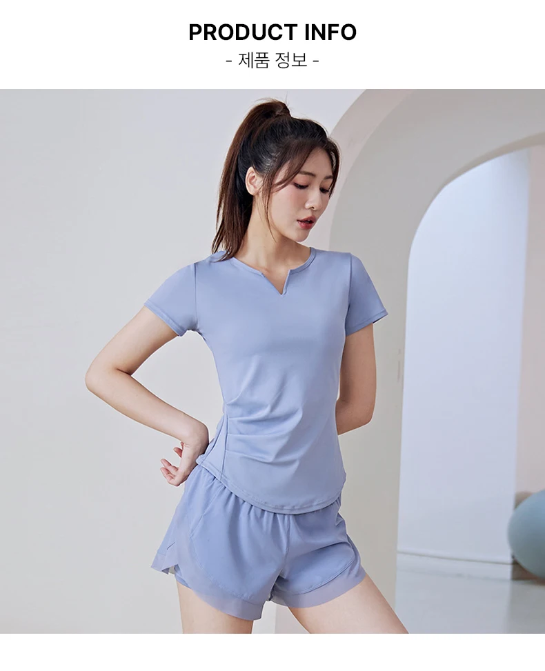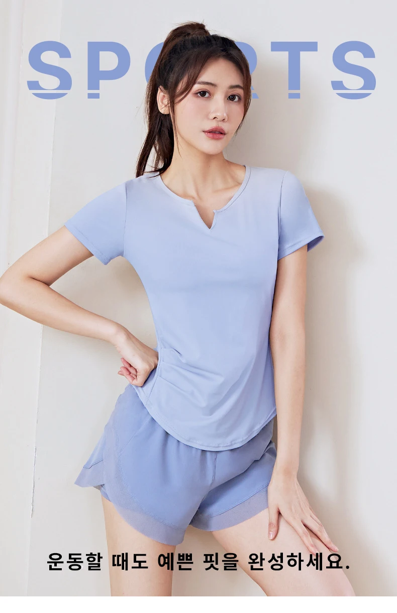 스타일아유 여성 브이넥 솔리드 요가 반팔티 허리슬림핏 땀흡수 통기성 편한핏 스포츠 상의 YG0137
