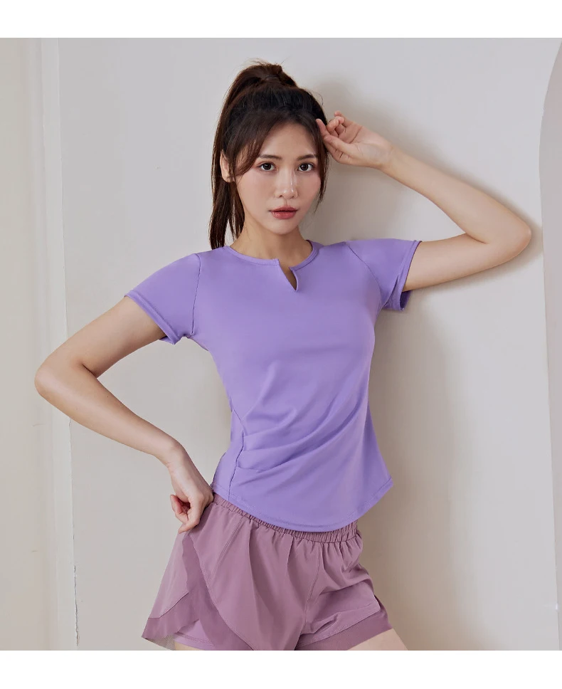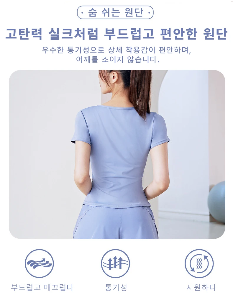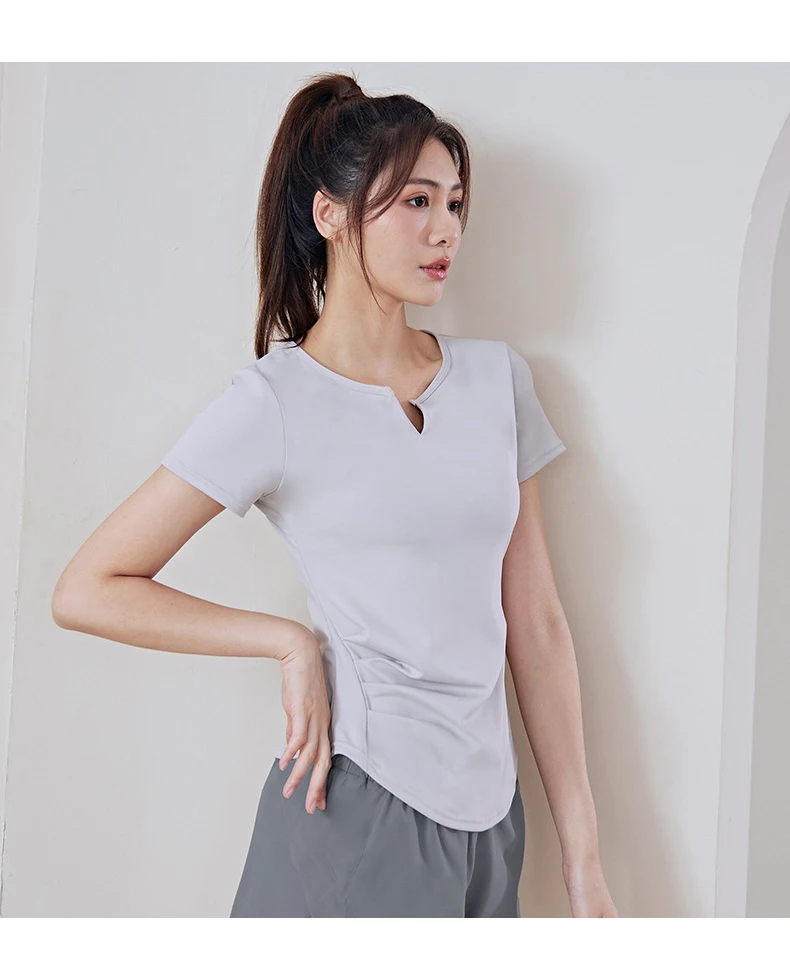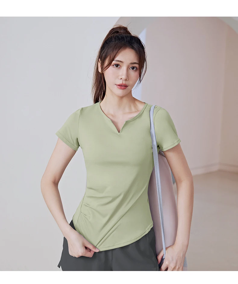 스타일아유 여성 브이넥 솔리드 요가 반팔티 허리슬림핏 땀흡수 통기성 편한핏 스포츠 상의 YG0137