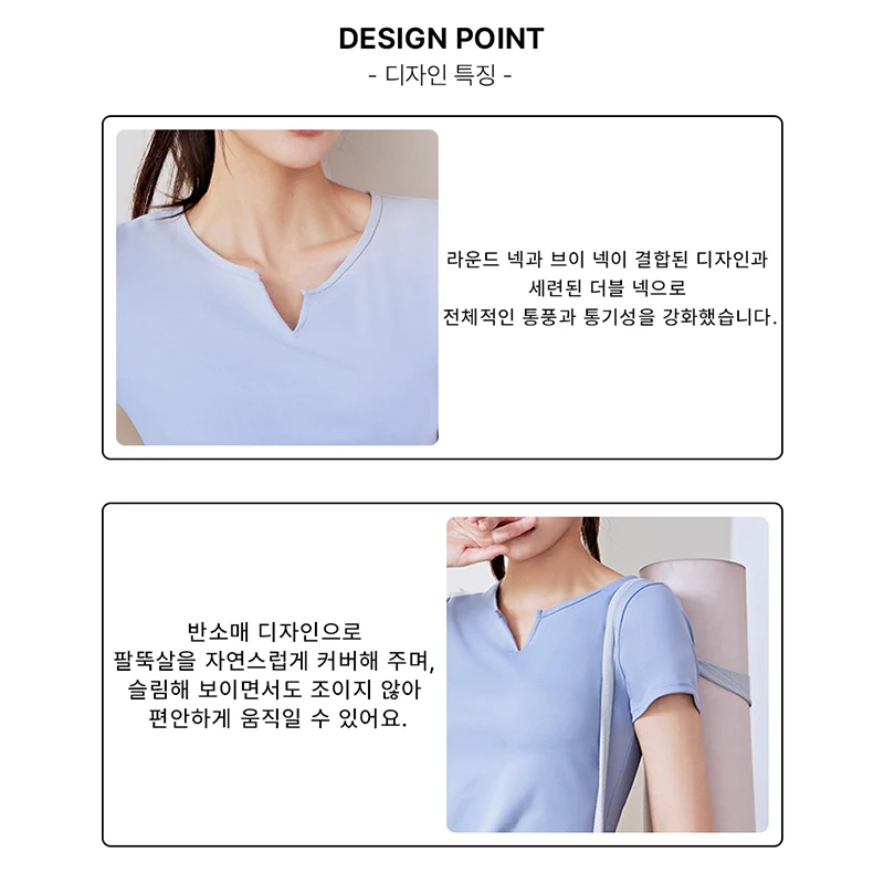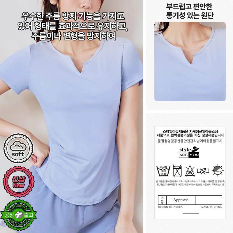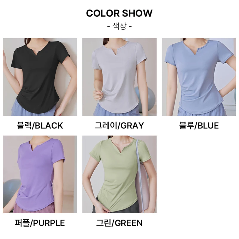 스타일아유 여성 브이넥 솔리드 요가 반팔티 허리슬림핏 땀흡수 통기성 편한핏 스포츠 상의 YG0137