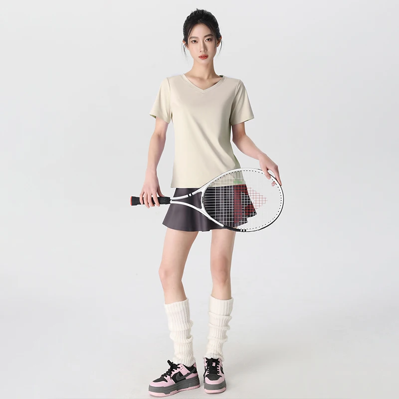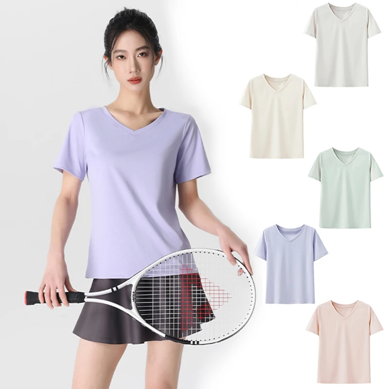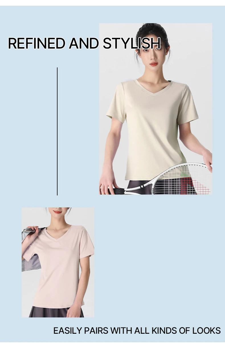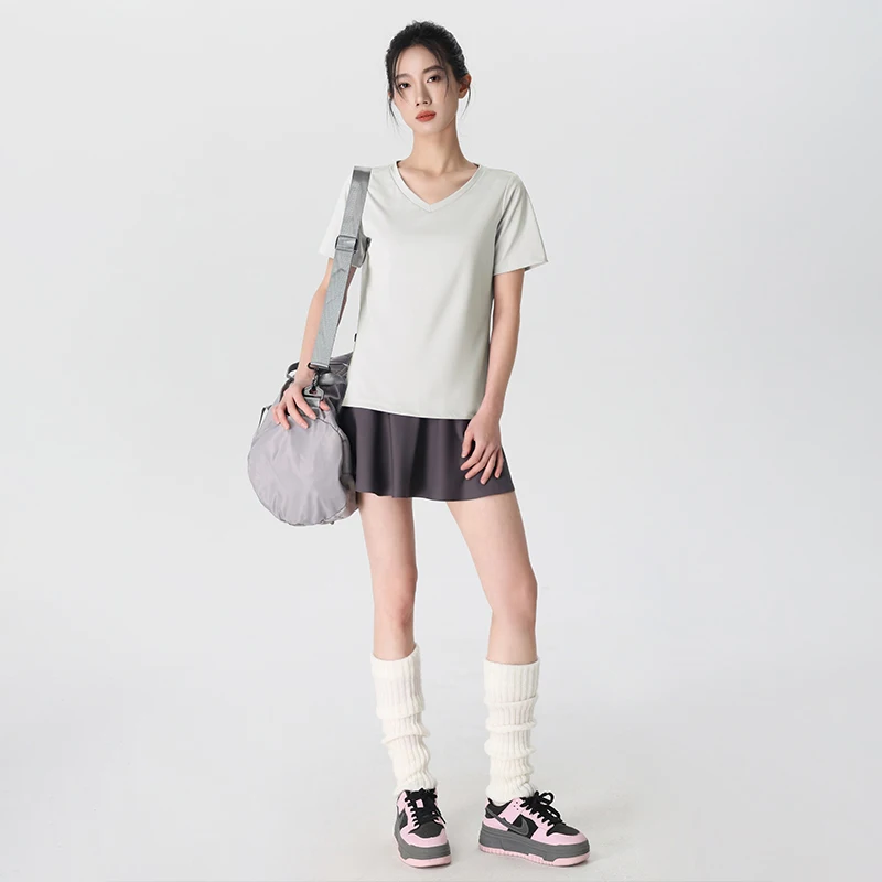 스타일아유 여성 브이넥 정어깨 루즈핏 반팔 요가복 러닝 통기성좋은 스포츠티 YG0133