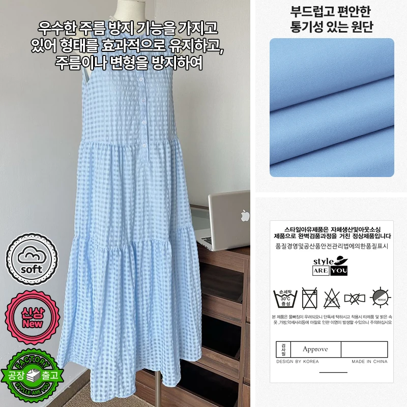 “스타일아유 여성 체크 패턴 롱 A라인 슬리브리스 드레스 루즈핏 여름 나시원피스 휴양지룩 OP2290”의 첫 상품평을 남겨주세요 응답 취소