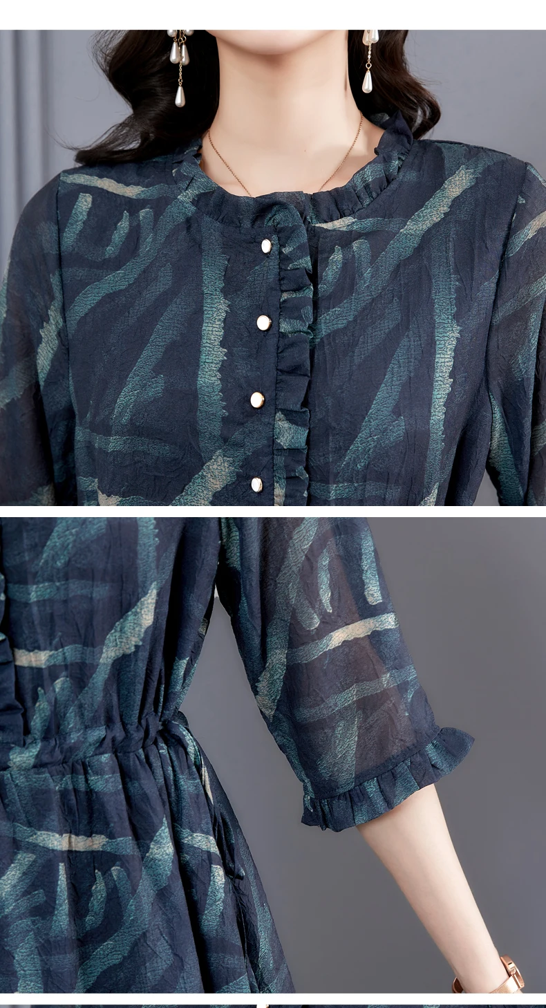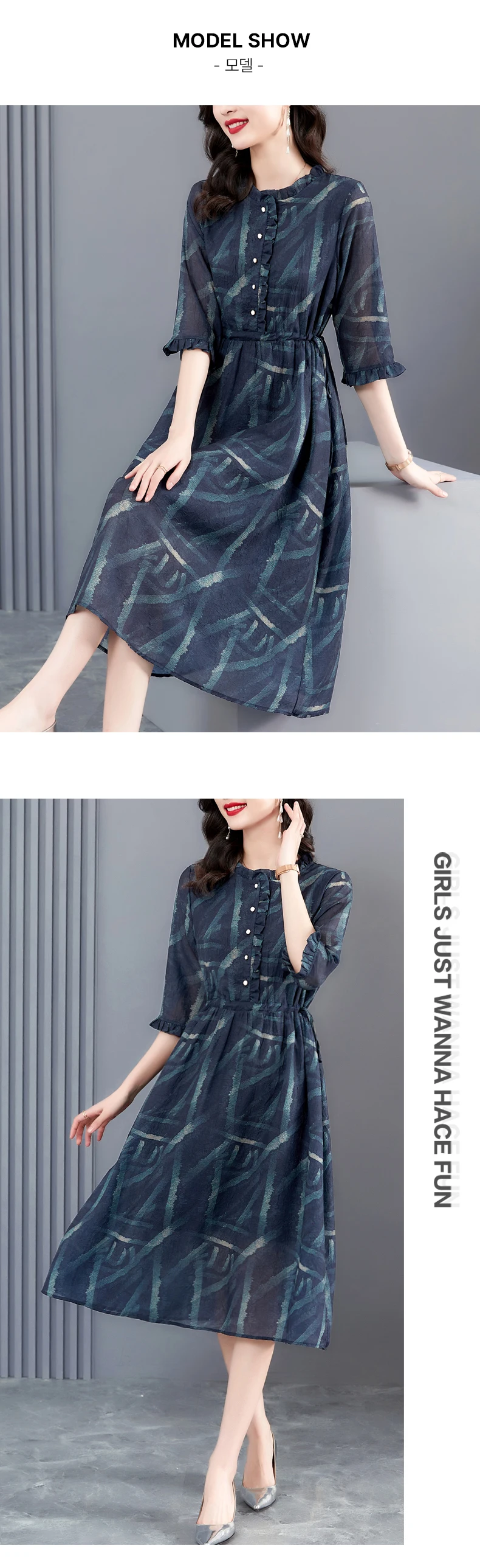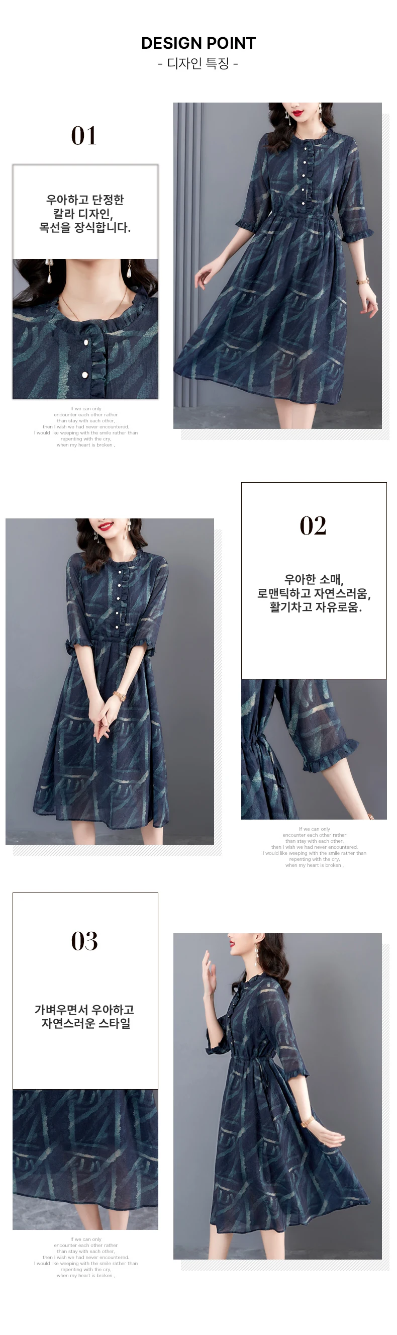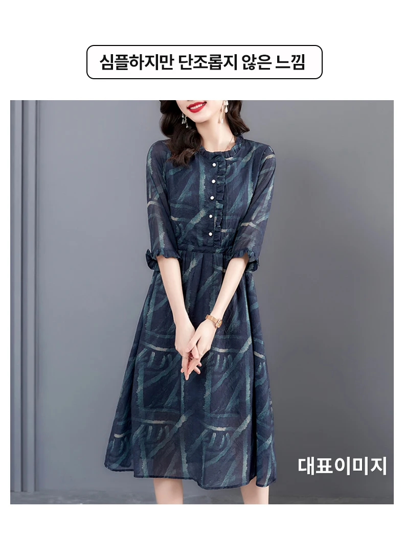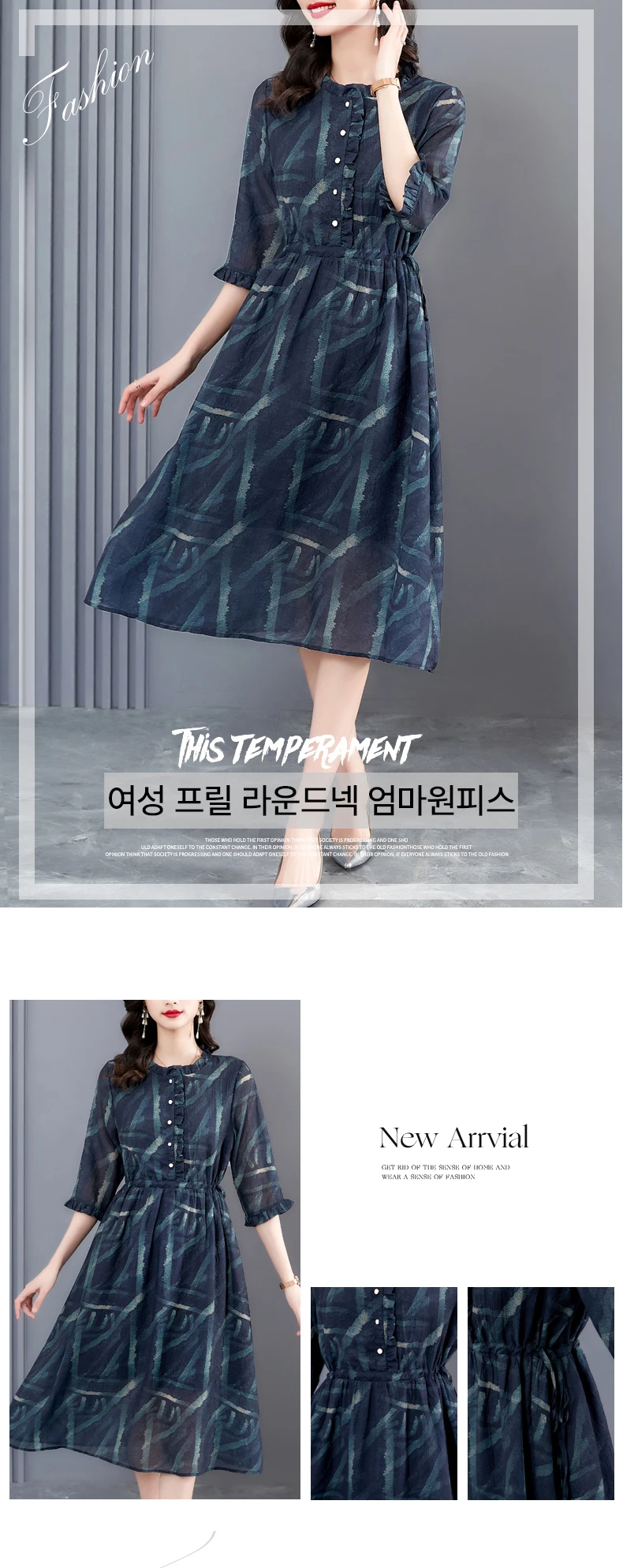 스타일아유 여성 프릴 라운드넥 여름 반팔 중년 엄마옷 유럽풍 원피스 OP1854