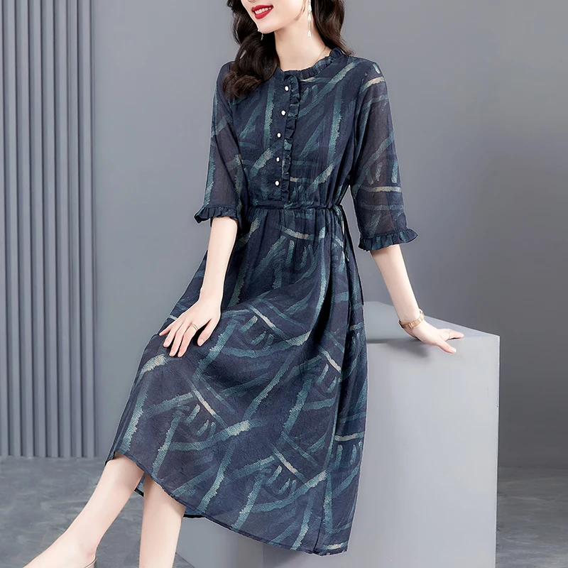 “스타일아유 여성 프릴 라운드넥 여름 반팔 중년 엄마옷 유럽풍 원피스 OP1854”의 첫 상품평을 남겨주세요 응답 취소