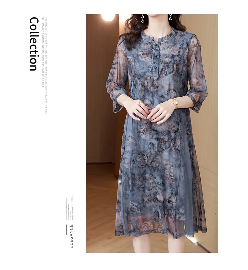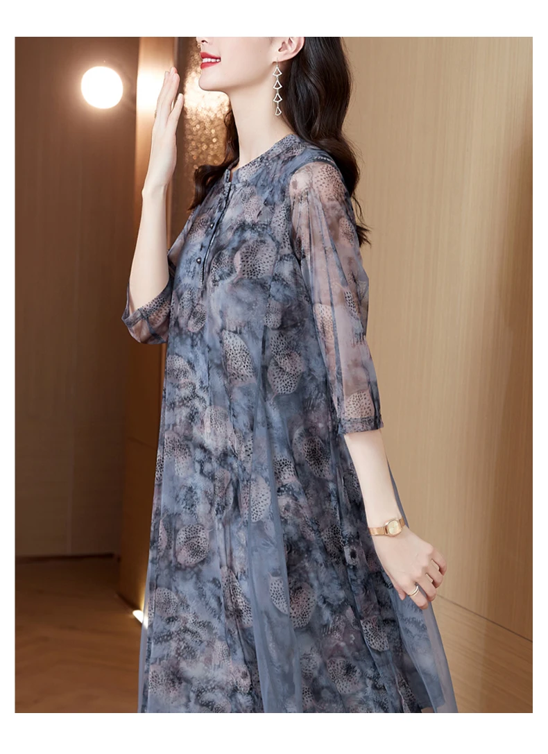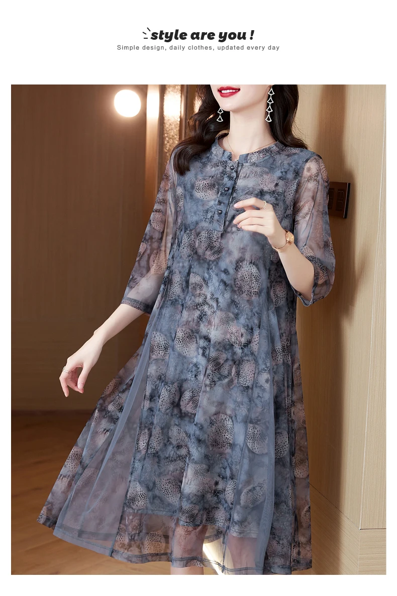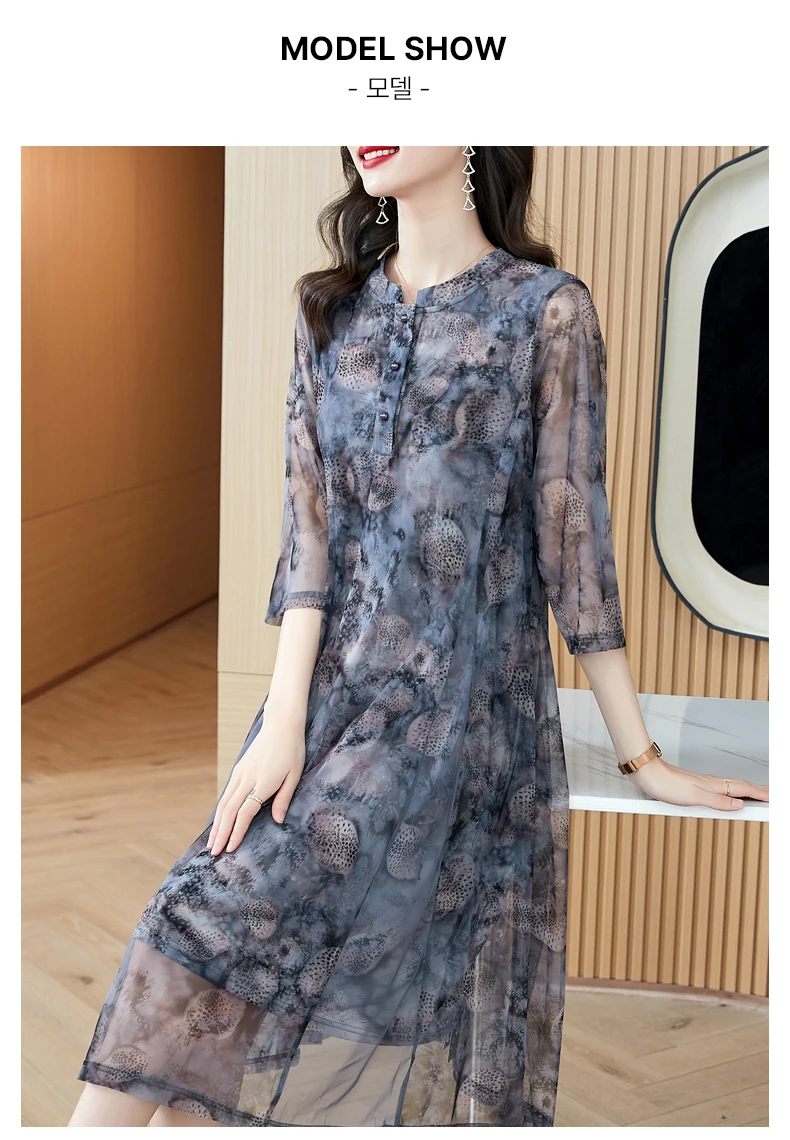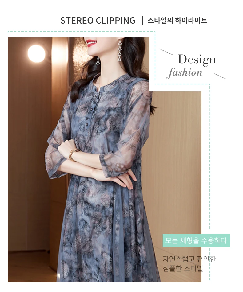 스타일아유 중년 여성 여름 반팔 패션 우아한 드레스 A라인 7부 소매 롱 원피스 OP1850