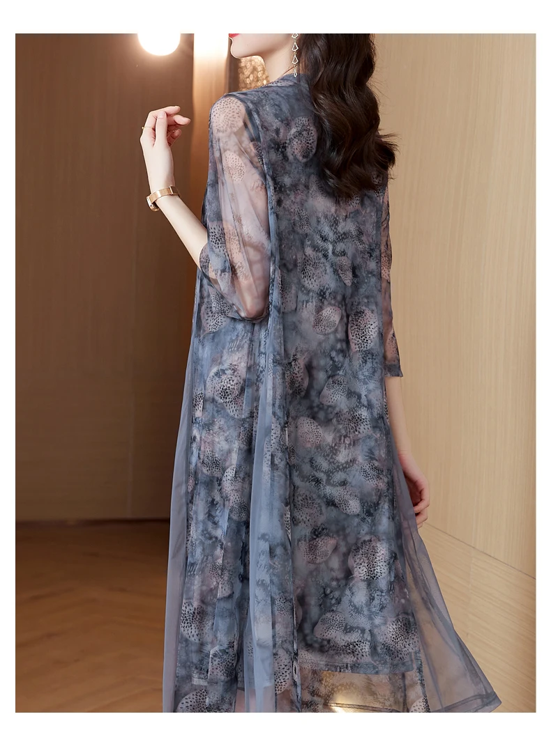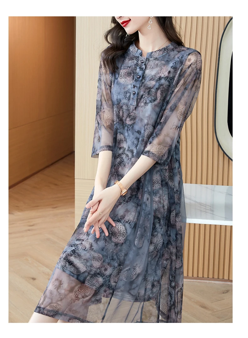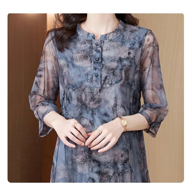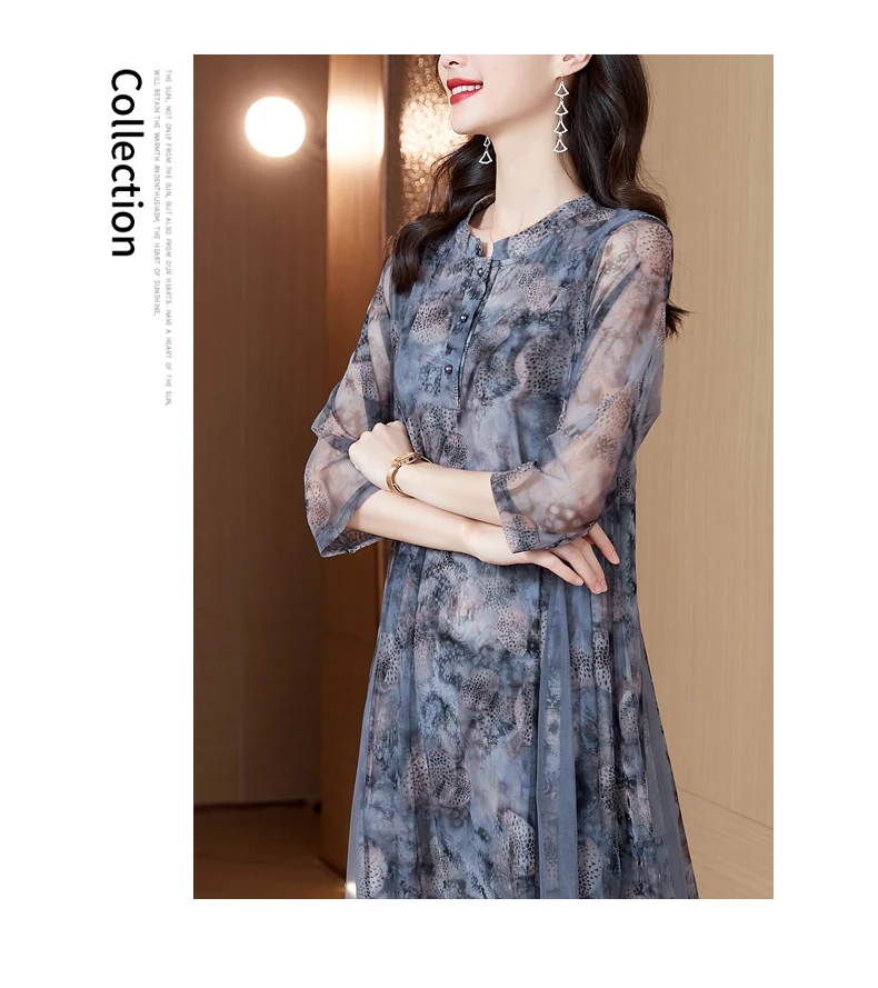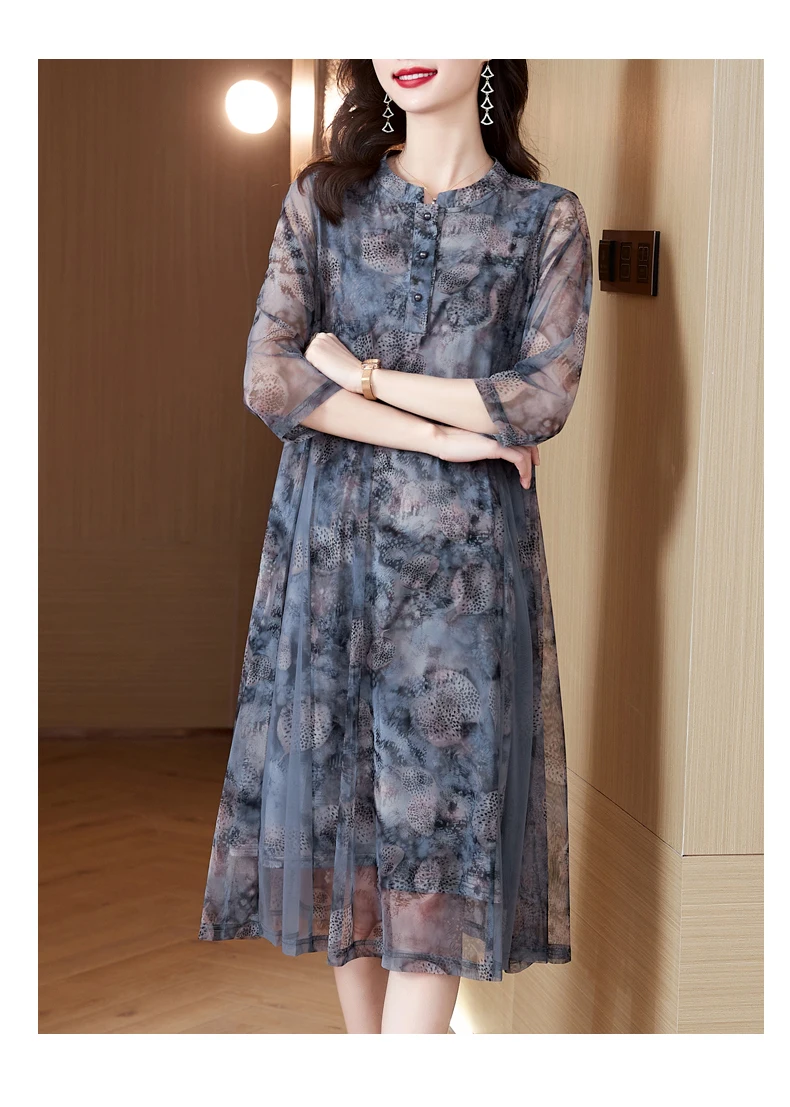스타일아유 중년 여성 여름 반팔 패션 우아한 드레스 A라인 7부 소매 롱 원피스 OP1850