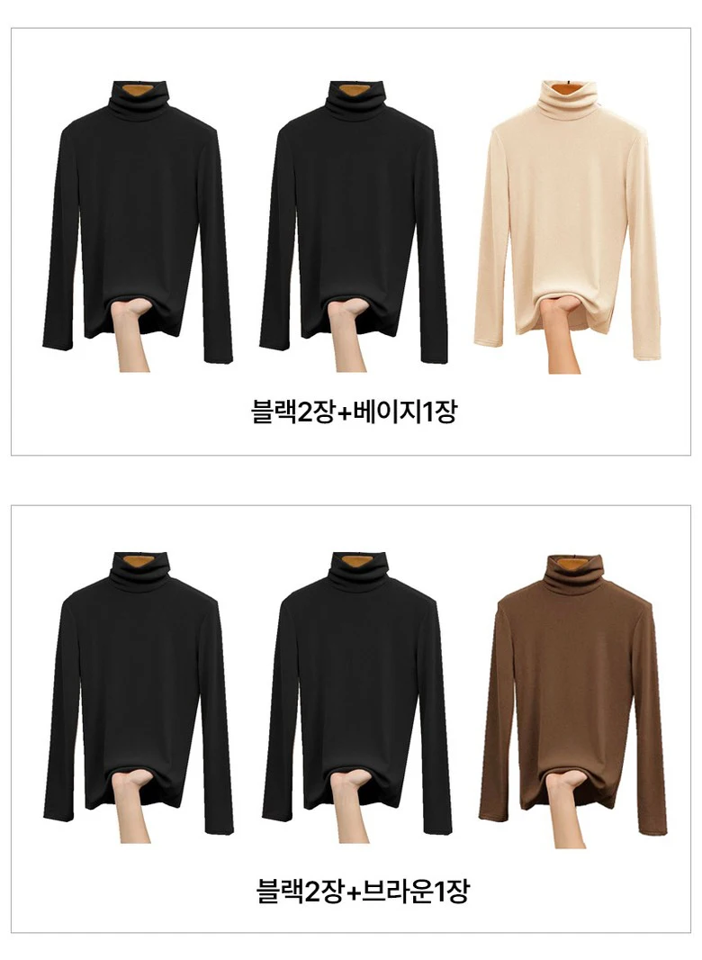스타일아유 1+1+1(3종세트) 겨울 슬림 융단 따뜻한 무지 긴목폴라 티셔츠 긴팔티 기본 이너티 TS2278