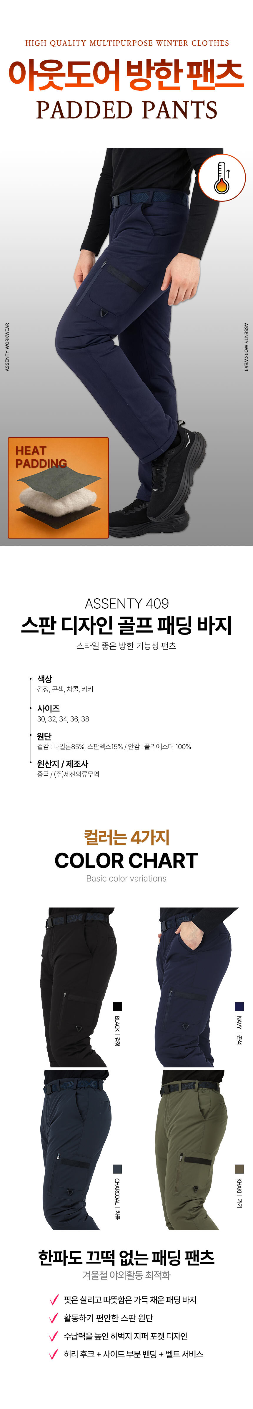아센티 겨울 남성 골프 패딩 스판 바지 작업복 등산복 방한 팬츠 409