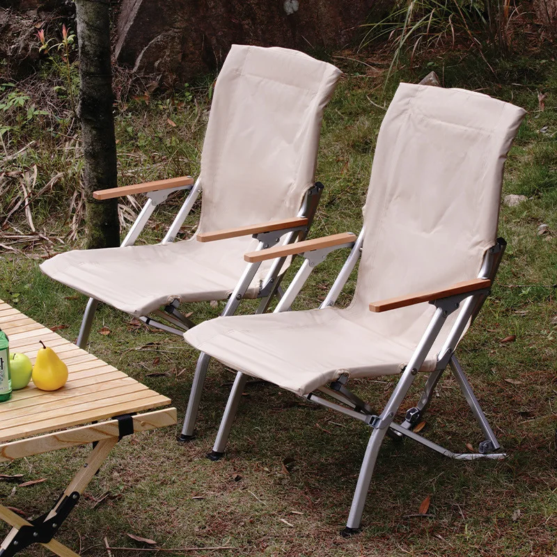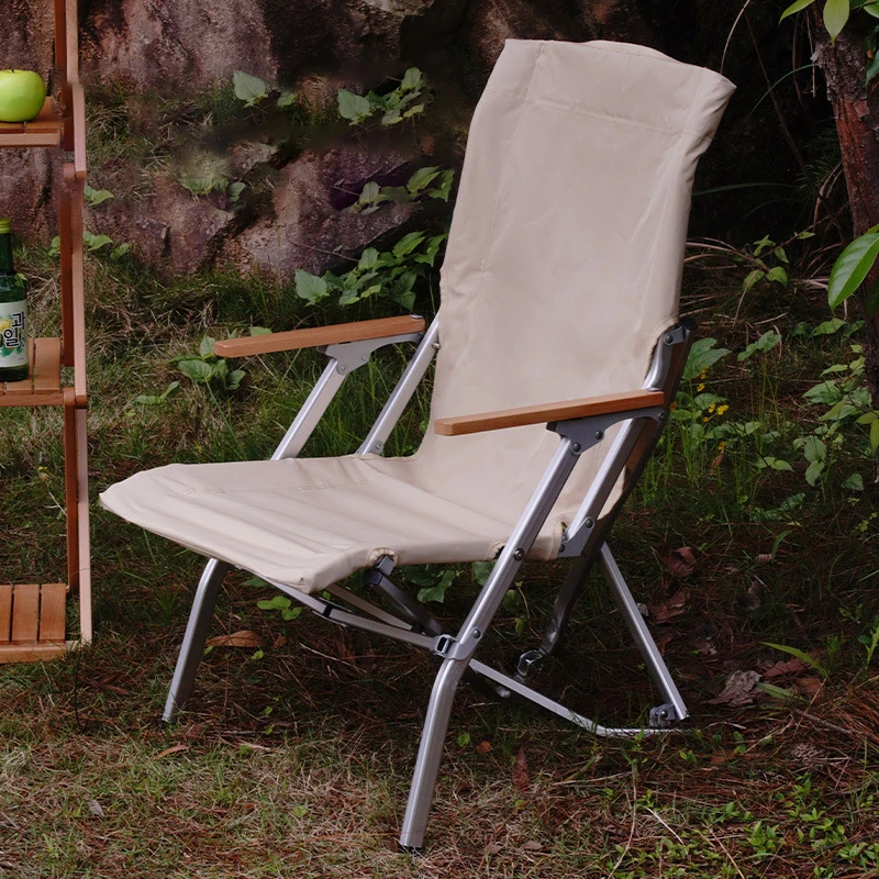 야외 접이식 의자 휴대용 편안한 알루미늄 합금 등받이 나무 팔 낚시 해변 여행 정원 파티오 캠핑 의자
