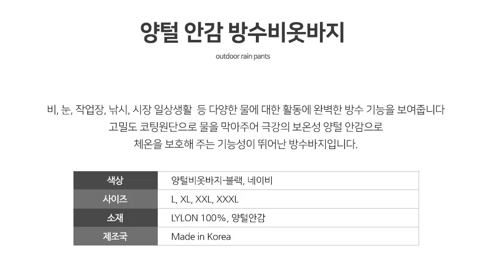 “양털 안감 겨울 비옷바지 방수 패딩바지 땀복 밴딩 시보리 우비 작업복 배달 라이더 어시장 농사”의 첫 상품평을 남겨주세요 응답 취소