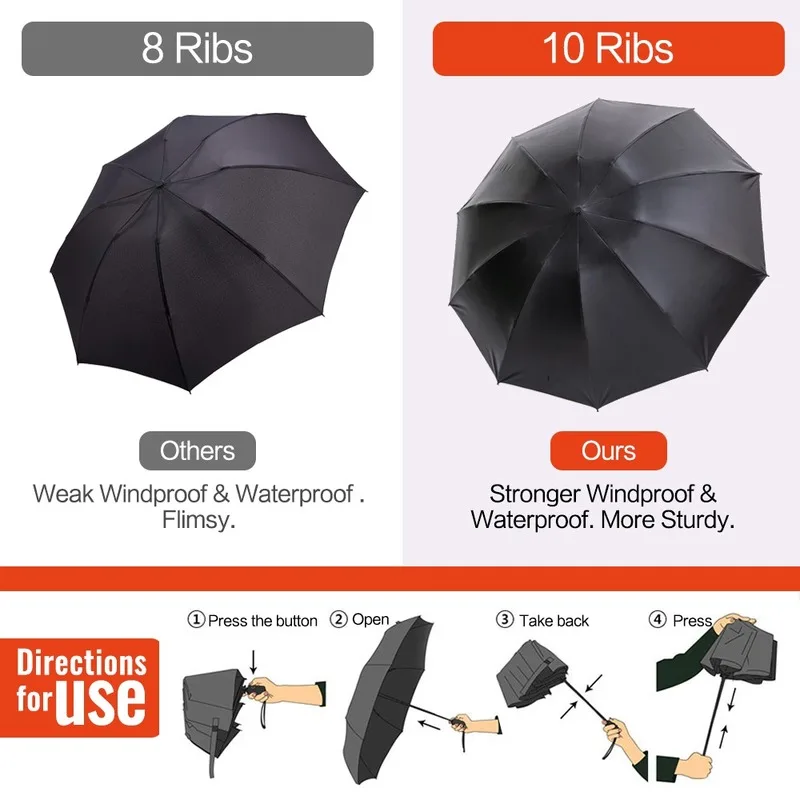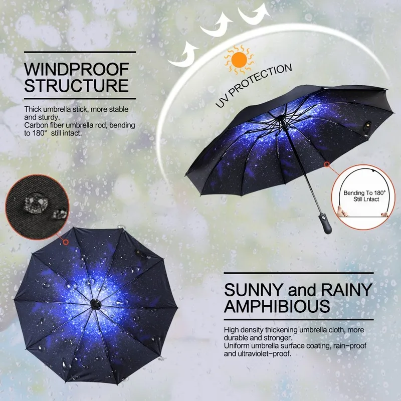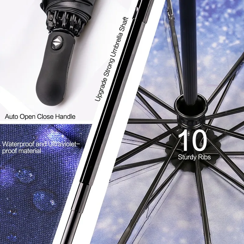 여성용 역방향 접이식 자동 우산, 10 갈비뼈, 강한 방풍 우산
