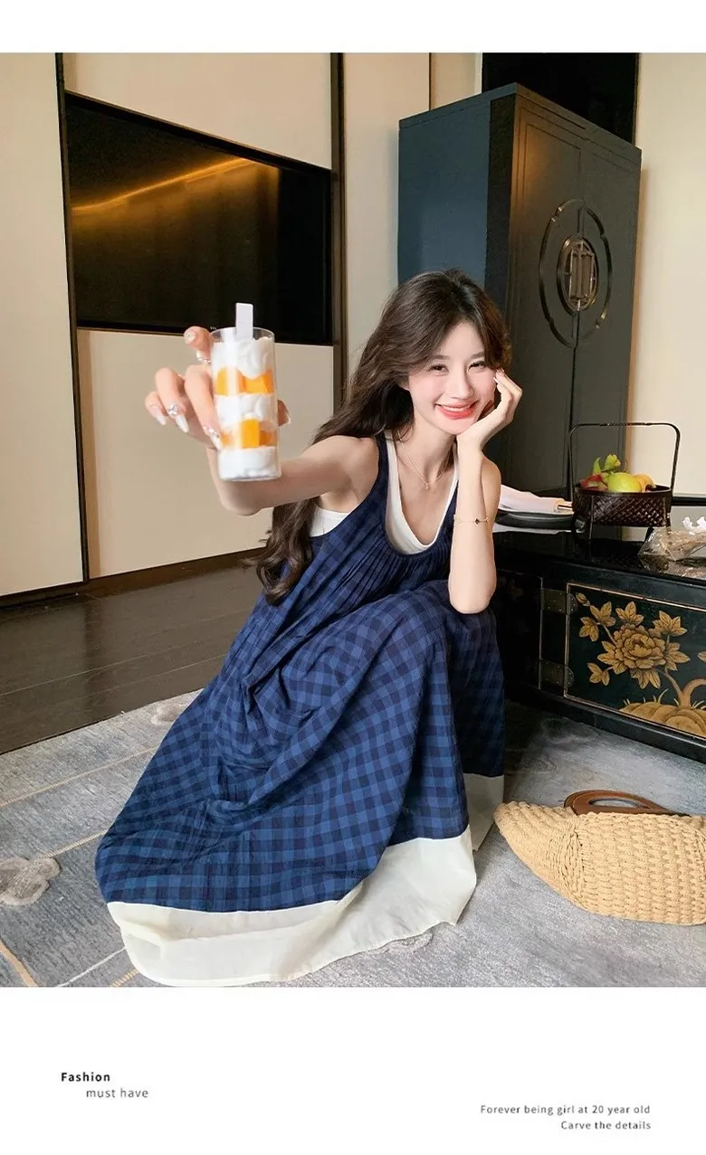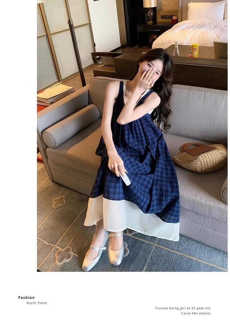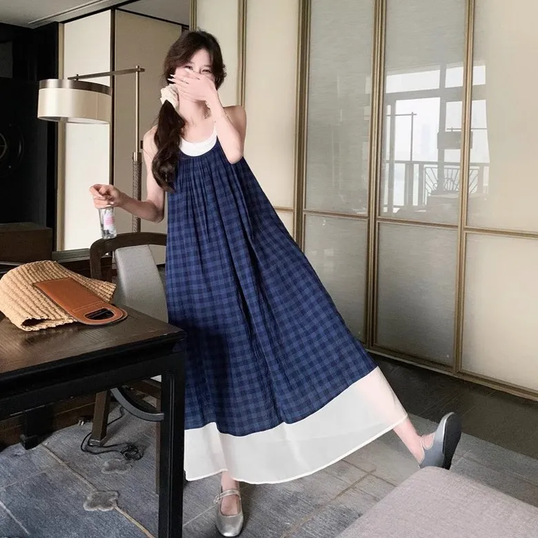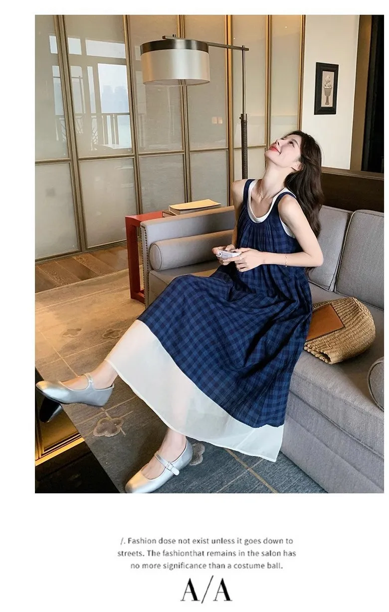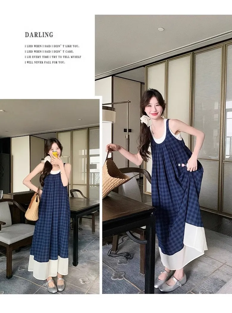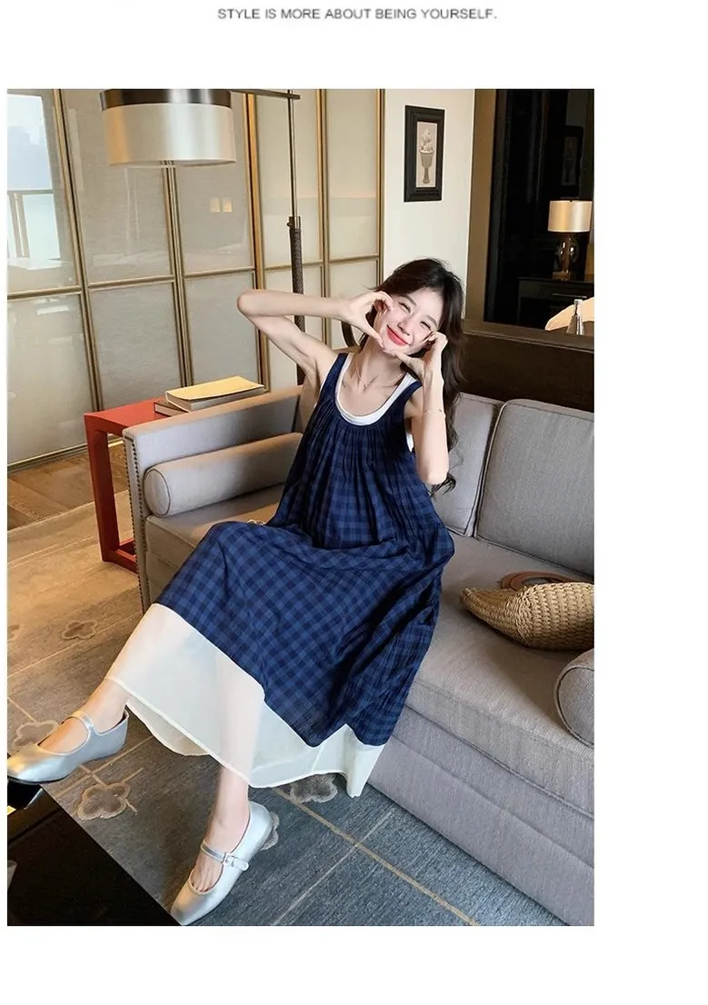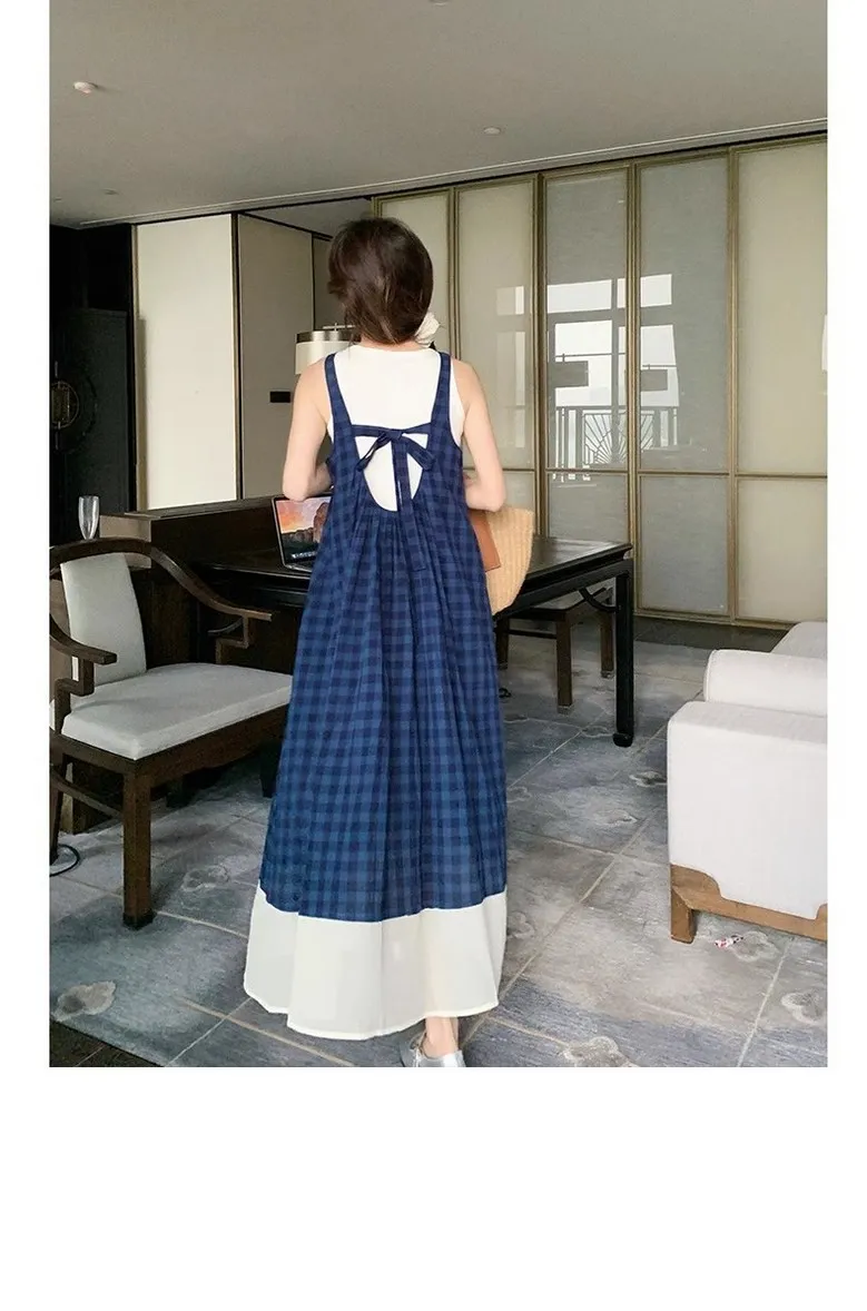 여성 여름 핀턱 주름 민소매 롱 드레스 캐주얼 휴가 탱크 드레스